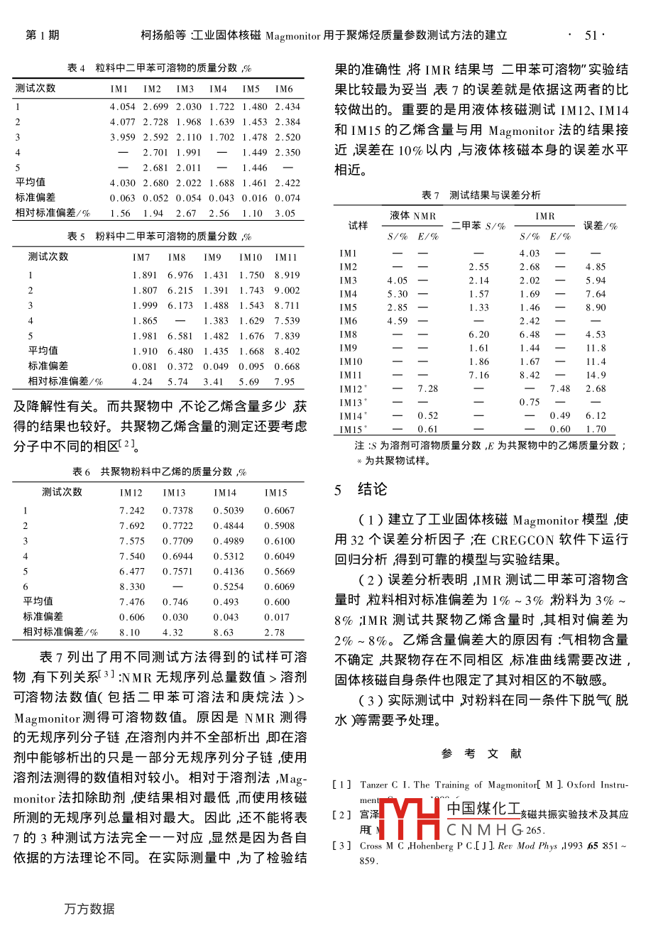 工業(yè)固體核磁Magmontior用于聚烯烴質量參數測試方法的建立