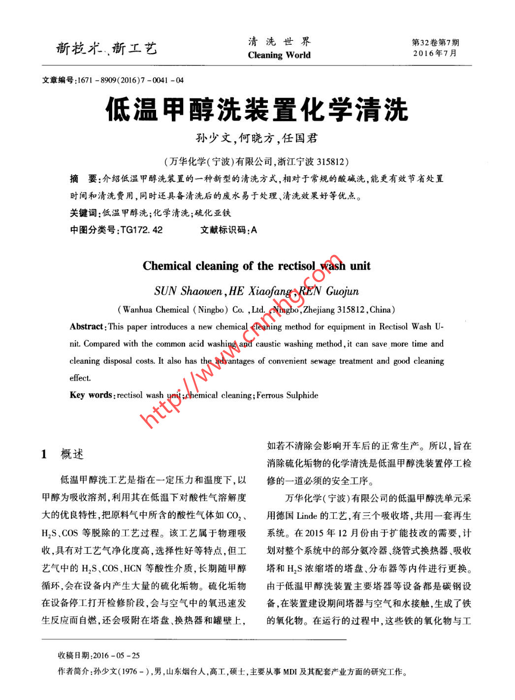 - 期刊名字:清洗世界