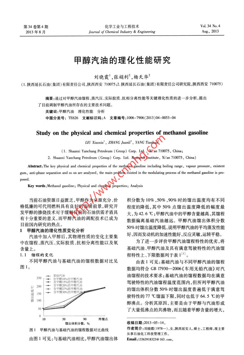 甲醇汽油的理化性能研究