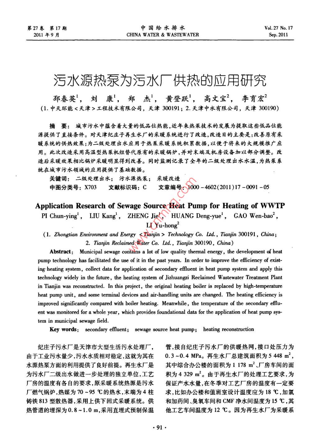 - 期刊名字:中國給水排水