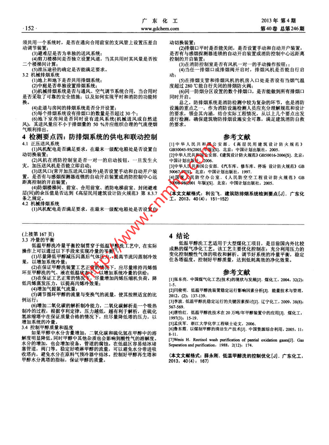 廣東化工2013年第4期:152.www.gdchem.com第40卷總第246期須共用一個(gè)系統(tǒng)時(shí),是否在通向合用前室的支風(fēng)管上設(shè)置壓差自動(dòng)切換裝置;動(dòng)調(diào)節(jié)裝置;(2)排煙口平時(shí)是否能關(guān)閉, 是否設(shè)置手動(dòng)和自動(dòng)開戶裝置,(3)避難層是否為單獨(dú)的送風(fēng)系統(tǒng);是否有與感煙探測器連鎖的自動(dòng)開啟裝置或消防控制中心遠(yuǎn)距離(4)剪 刀樓梯間是否獨(dú)立設(shè)置風(fēng)道,當(dāng)其共用時(shí)其風(fēng)量是否按(3)在消防控制室是否有風(fēng)機(jī)-對一的手動(dòng)操作按鈕;;(5)泄 壓途徑的確定是否能滿足要求。(4)當(dāng)任一排煙口或排煙閥開啟時(shí),排煙風(fēng)機(jī)是否能自行啟3.2 機(jī)械排煙系統(tǒng)動(dòng):(1)地上和地下是否共用排煙系統(tǒng);(5)在排煙支管和排煙風(fēng)機(jī)的機(jī)房入口處是否設(shè)有當(dāng)煙氣溫(2)中庭是否單獨(dú)設(shè)置排煙系統(tǒng):度超過280 C能自行關(guān)閉的排煙防火閥:(3)機(jī)械排煙系統(tǒng)是否與通風(fēng)、空氣調(diào)節(jié)系統(tǒng)合用,當(dāng)合用時(shí)(6)同-防煙分區(qū)設(shè)置的數(shù)個(gè)排煙口,是否能做到所有排煙口是否采取了可靠的安全措施:以及如何實(shí)現(xiàn)平時(shí)和消防的功能轉(zhuǎn)同時(shí)開啟換??傊?,防排煙系統(tǒng)是消防檢測中較為復(fù)雜的環(huán)節(jié),也是消防(4)走道與房間的排煙系統(tǒng)是否分開設(shè)置:設(shè)施的重點(diǎn)之一,作為消防設(shè)施檢測人員應(yīng)充分理解規(guī)范和設(shè)計(jì)(5)每個(gè)排煙系統(tǒng)設(shè)有排煙口的數(shù)量是否超過30個(gè);的要求,領(lǐng)會(huì)其內(nèi)涵,結(jié)合實(shí)際工程情況,從以上幾個(gè)要點(diǎn)出發(fā)(6)地下室房間是否同時(shí)沒有進(jìn)風(fēng)系統(tǒng)(機(jī)械進(jìn)風(fēng)或自然進(jìn)進(jìn)行檢測,確保建筑物防排煙設(shè)施安全可靠,滿足建筑消防自救風(fēng)),其進(jìn)風(fēng)量應(yīng)不小于排煙量的50 %并應(yīng)組織合理的氣流使煙的要求。氣順利排出。4檢測要點(diǎn)四:防排煙系統(tǒng)的供電和聯(lián)動(dòng)控制參考文獻(xiàn)4.1正壓送風(fēng)系統(tǒng)[]中華人民共和國公安部.《高層民用建筑設(shè)計(jì)防火規(guī)范》(1)風(fēng)機(jī)配電是否滿足要求,在最末-級配電箱處是否設(shè)置自GB50045-95(2005 年版)[S].北京:中國計(jì)劃出版社,2005.動(dòng)切換裝置:[2]中華人民共和國公安部.《建筑設(shè)計(jì)防火規(guī)范》GB50016 2006[S].北京:(2)風(fēng)機(jī)在消防控制室是否- -對 -的啟動(dòng)按鈕,一旦發(fā)生火中國計(jì)劃出版社,2006.大,加壓送風(fēng)機(jī)是否能立即啟動(dòng);[3]中華人民共和國公安部、《汽車庫、修車庫、停場設(shè)計(jì)防火規(guī)范》GB(3)送風(fēng)口(常開加壓送風(fēng)口除外)是否設(shè)置手動(dòng)和自動(dòng)開戶裝50067-97[S].北京:中國計(jì)劃出版社,1997.置,是否有與感煙探測器連鎖的自動(dòng)開啟裝置或消防控制中心遠(yuǎn)[4]國家人民防空辦公室、《人民防空空工程設(shè)計(jì)防火規(guī)范》GB距離控制的開啟裝置:50098-98(2001年版)[S].北京:中國計(jì)劃出版社,2005.(4)防煙樓梯間、前室、合用前室、消防電梯前室、封閉避難層(間)的余壓值是否達(dá)到《高層民用建筑設(shè)計(jì)防火規(guī)范》第8.3.7(本文文獻(xiàn)格式:利云飛。建筑防排煙系統(tǒng)檢測要點(diǎn)[J].廣東化工,2013, 40(4): 151-152)4.2機(jī)械排煙系統(tǒng)(1)風(fēng)機(jī)配電是否滿足要求,在最末- -級配電箱處是否設(shè)置自(上接第167頁)4結(jié)論3.3冷量的平衡低溫甲醇洗冷量平衡控制貫穿于低溫甲醇洗工藝中,在實(shí)際低溫甲醇洗工藝適用于大型煤化工項(xiàng)目,是目前國內(nèi)外比較成熟的煤氣凈化工藝。該工藝主要優(yōu)化控制在:充分利用壓力的操作_上可以通過以下手段來實(shí)現(xiàn)冷量的平衡(1)盡量降低甲醇減壓閃蒸后氣體壓力,提高節(jié)流閃蒸制冷效變化控制酸性氣體的吸收和解析。調(diào)節(jié)好系統(tǒng)的冷量平衡,穩(wěn)定R,以增加系統(tǒng)冷量:住各塔溫度??刂坪眉状假|(zhì)量,達(dá)到低耗高效的凈化效果。(2)在保證甲醇洗裝置工藝正常的情況下,應(yīng)盡量維持丙烯循不至甲醇洗的氣、液在低溫狀態(tài)下,以增加系統(tǒng)冷量的供給:(3)在保證工藝正常的情況下,盡量增加丙烯壓縮機(jī)負(fù)荷,降[1]張東亮.中國煤氣化工藝(技術(shù))的現(xiàn)狀與發(fā)展[]I.煤化工, 2004, 32(2);低丙烯蒸發(fā)壓力,以提高丙烯冷效果:(4)增加氣提氨氣流量雙來i[2]閆俊明.低溫甲醇洗裝置穩(wěn)定運(yùn)行影響因素分析[J.能量技術(shù)與管理,(5)調(diào)節(jié)循環(huán)甲醇的流量與變換氣的流量,使其按照適宜的比2012, (2): 137-139.[3]李波.低溫甲醇洗穩(wěn)定運(yùn)行的關(guān)鍵因素探討[I].遼寧化工, 2009, 38(8):網(wǎng)(6)增加二氧化碳的解析制冷能力, 二氧化碳解析是一一個(gè)吸熱567-569.制冷的過程,根據(jù)亨利定律,壓力越低,越有利于解析,在硫化[4]唐恰紅.低溫甲醇洗技術(shù)在20萬噸/年甲醇裝置中的應(yīng)用[.煤化工,氫濃縮塔中在保證質(zhì)量合格的情況下,應(yīng)盡量降低塔的壓力,以1997(3): 15-19.增加系統(tǒng)的冷量。[5]孟慶軍.浙江大學(xué)化學(xué)