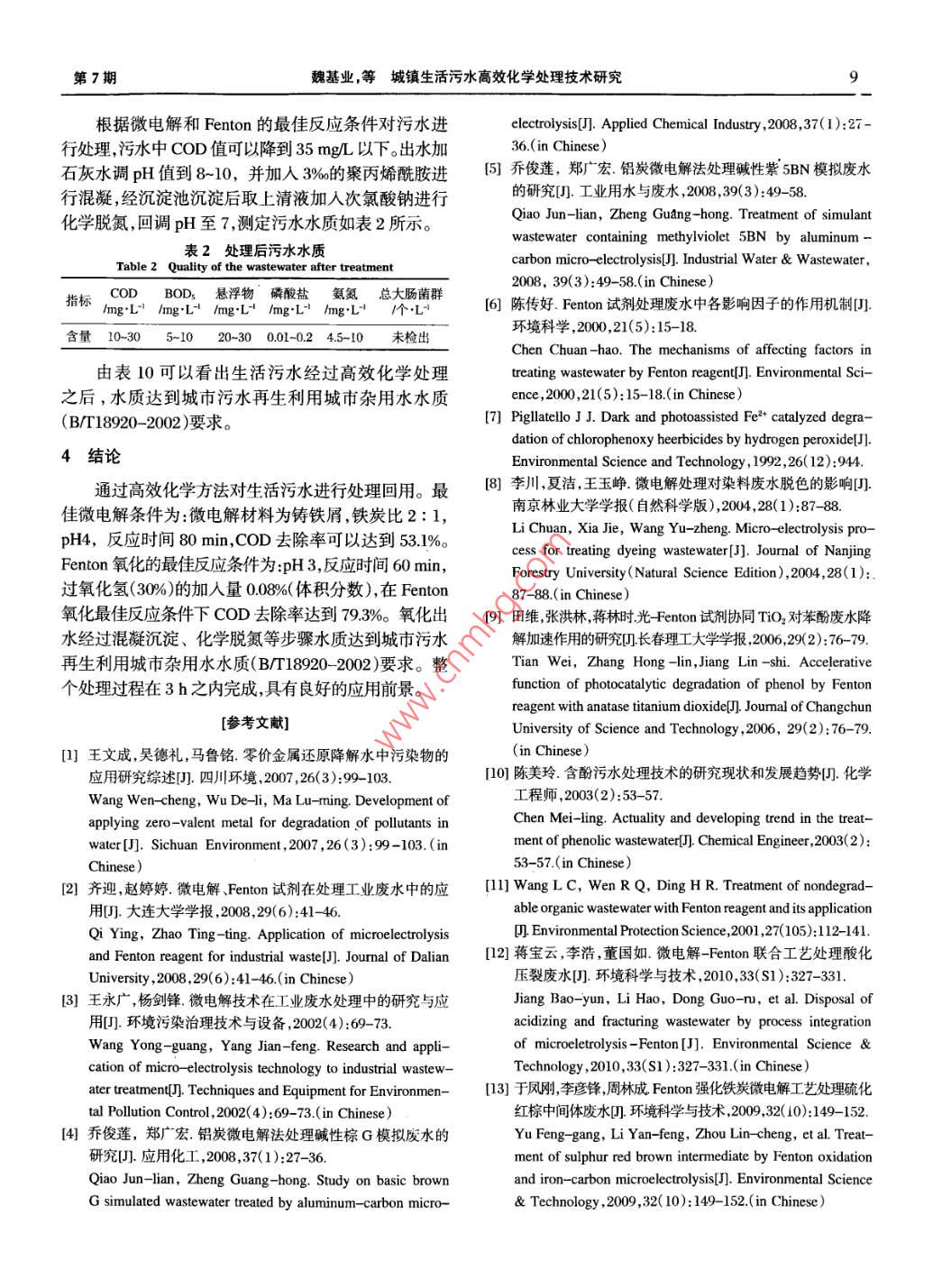 城鎮(zhèn)生活污水高效化學(xué)處理技術(shù)研究