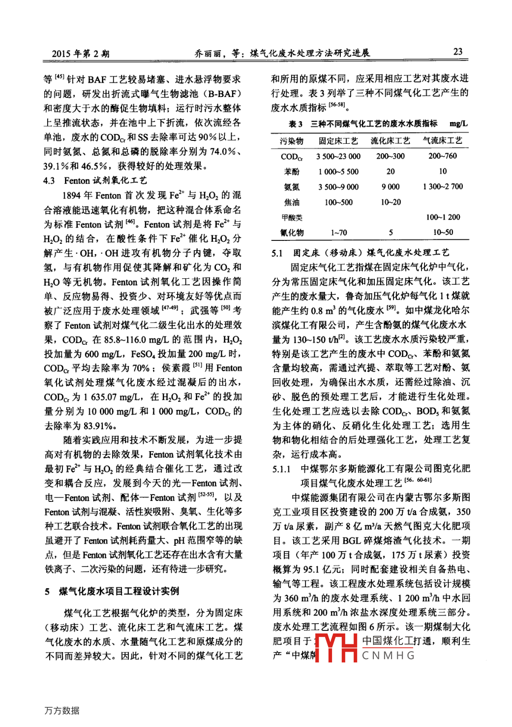 煤氣化廢水處理方法研究進展
