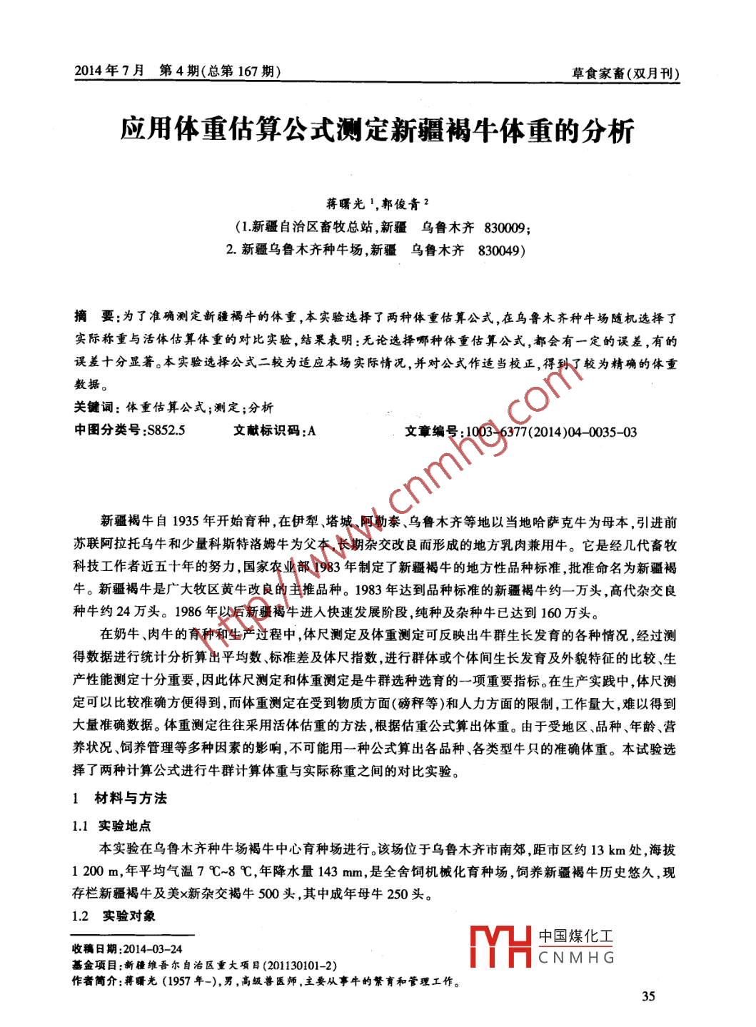- 期刊名字:草食家畜