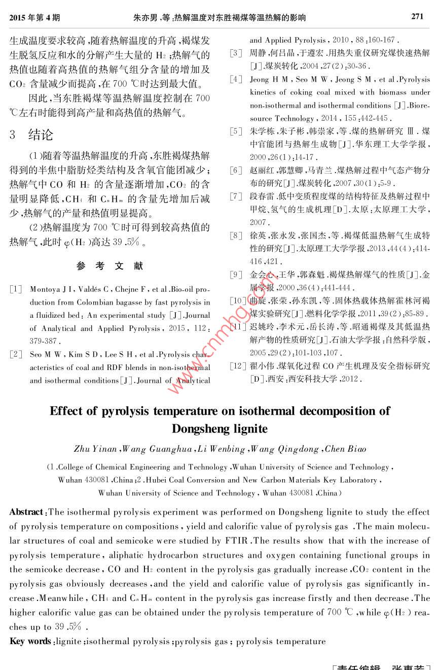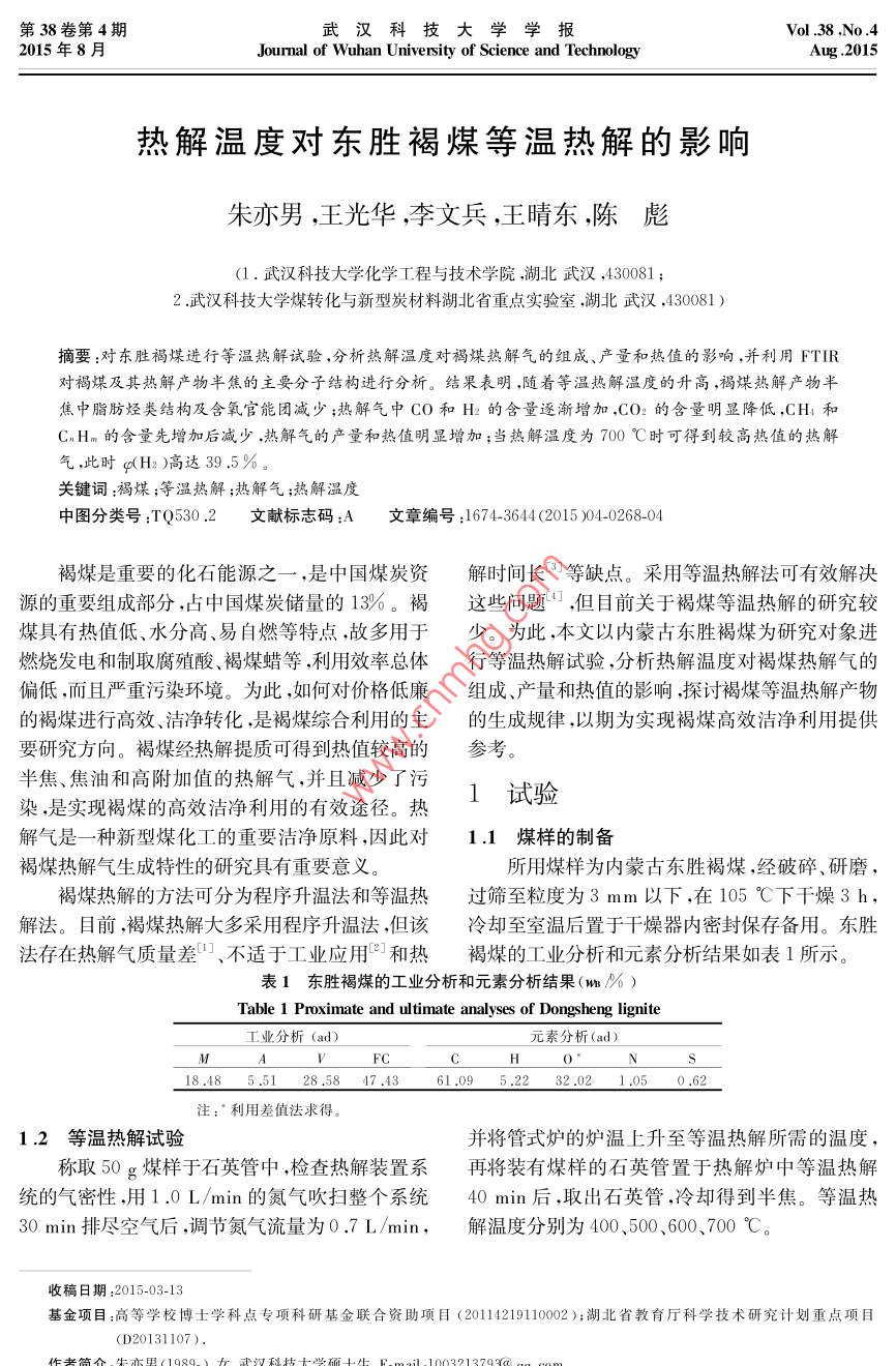 熱解溫度對東勝褐煤等溫?zé)峤獾挠绊?/h1>