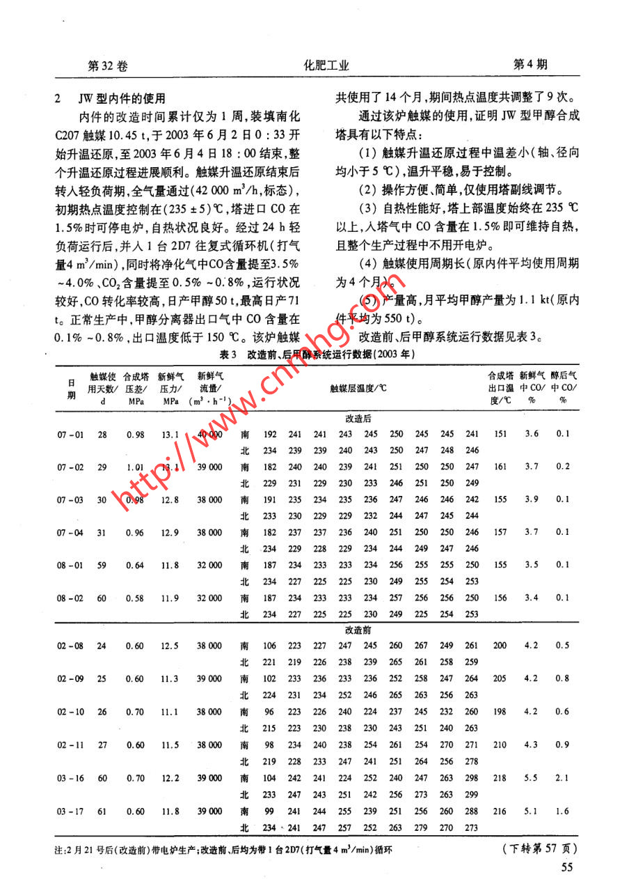 JW型甲醇合成塔使用小結