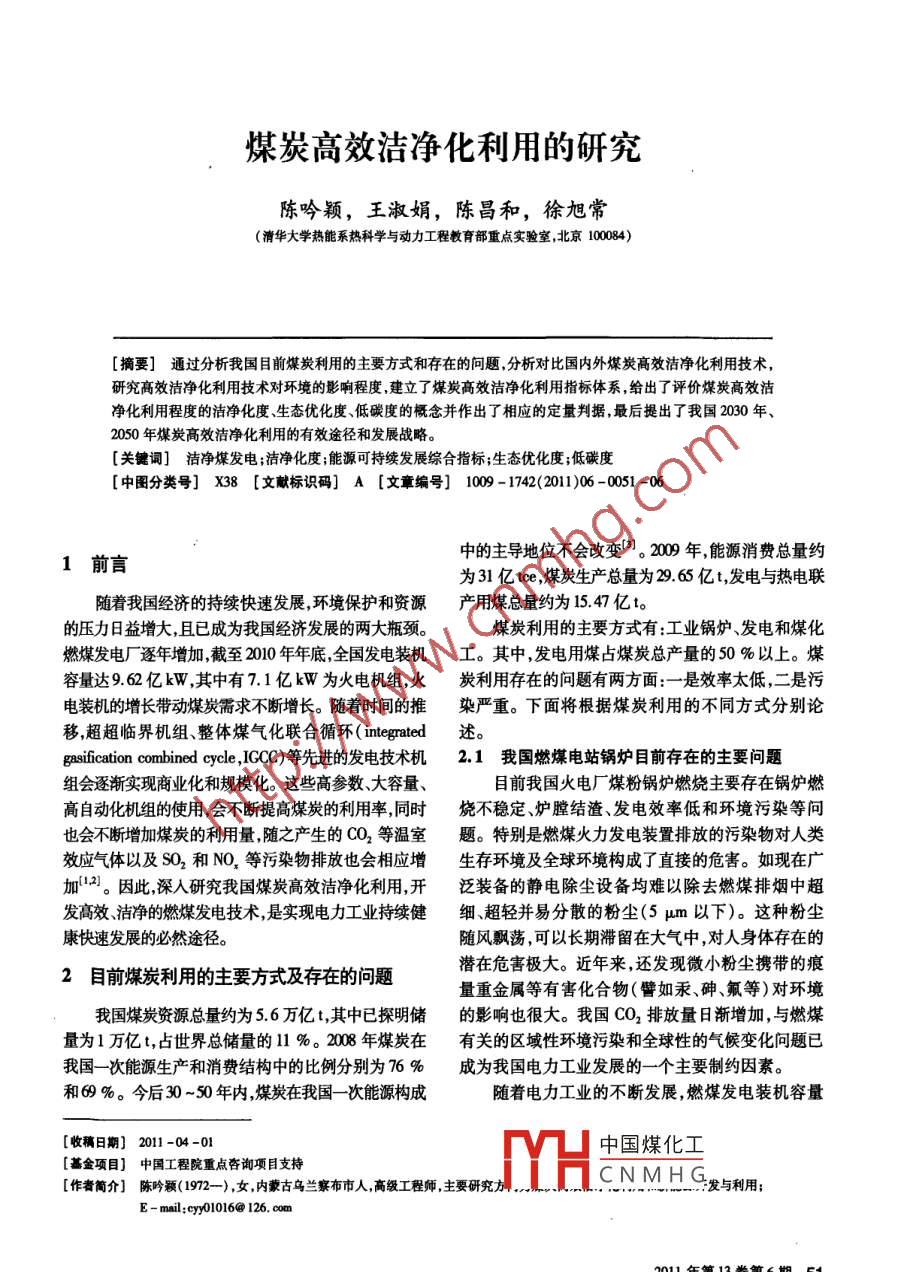 煤炭高效潔凈化利用的研究