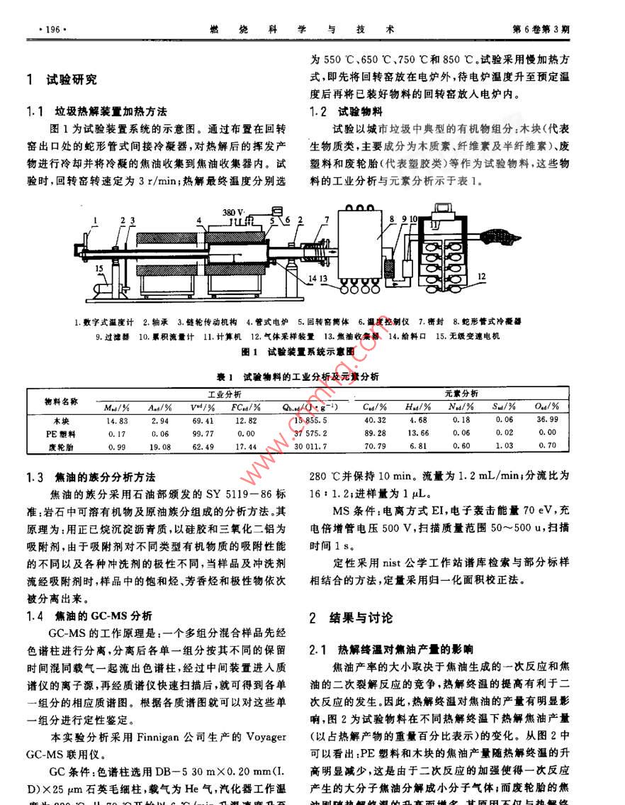 城市垃圾在回轉(zhuǎn)窯中熱解:熱解焦油特性研究