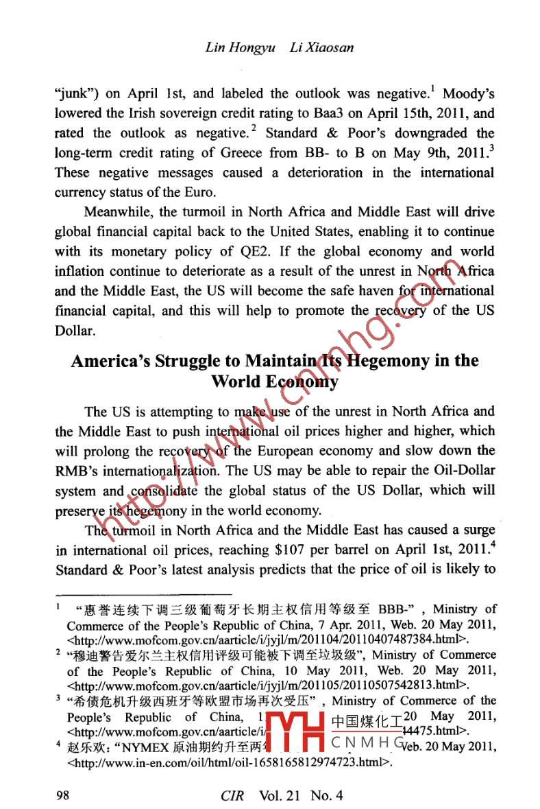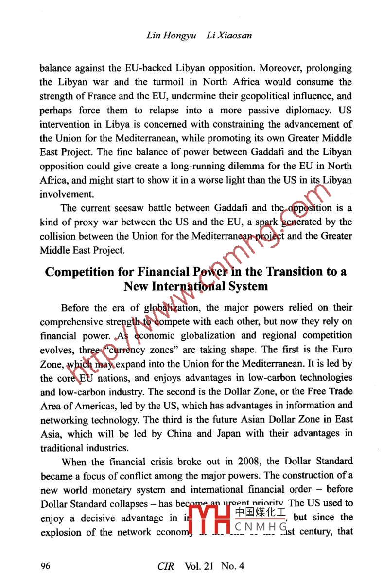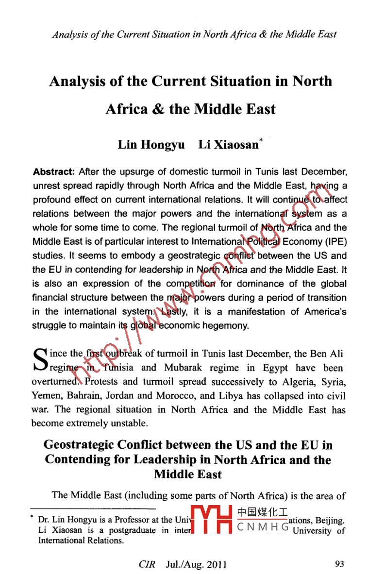 Analysis of the Current Situation in North Africa & the Middle EastAnalysis of the Current Situation in NorthAfrica & the Middle EastLin Hongyu Li Xiaosan'Abstract: After the upsurge of domestic turmoil in Tunis last December,unrest spread rapidly through North Africa and the Middle East, having aprofound effect on current international relations. It will continue to affectrelations between the major powers and the international system as awhole for some time to come. The regional turmoil of North Africa and theMiddle East is of particular interest to International Political Economy (IPE)studies. It seems to embody a geostrategic conflict between the US andthe EU in contending for leadership in North Africa and the Middle East. Itis also an expression of the competition for dominance of the globalfinancial structure between the major powers during a period of transitionin the international system. Lastly, it is a manifestation of America'sstruggle to maintain its global economic hegemony.ince the first outbreak of turmoil in Tunis last December, the Ben AliSiregime in Tunisia and Mubarak regime in Egypt have beenoverturned. Protests and turmoil spread successively to Algeria, Syria,Yemen, Bahrain, Jordan and Morocco, and Libya has collapsed into civilwar. The regional situation in North Africa and the Middle East hasbecome extremely unstable.Geostrategic Conflict between the US and the EU inContending for Leadership in North Africa and theMiddle EastThe Middle East (including some parts of North Africa) is the area of中國煤化工* Dr. Lin Hongyu is a Professor at the Univ二lations, Beijing.Li Xiaosan is a postgraduate in interMYHCN MH G University ofInternational Relations.CIR Jul./Aug. 201193Lin Hongyu Li Xiaosanmost important geostrategic significance for the US. Since the collapse ofthe Bretton Woods System in the 1970s, the economic underpinning ofAmerican hegemony has been transferred from a Gold-Dollar to anOil-Dollar base. Controlling the politics of the Middle East was the basisfor the Oil-Dollar system. When the Cold War ended, the significance ofthe Middle East increased further, as manifested by the two wars againstIraq initiated by the Bush family. America's geopolitical barycenter shiftedfrom Westerm Europe to the Middle East in the post-Cold War era. Afterthe 9/11 terrorist attacks, the Bush administration exploited the War onTerror to advance its Greater Middle East Project. While the Marshall Planhad aimed at maintaining control of Western Europe in the bipolar ColdWar global system, the purpose of this Greater Middle East Project is tomaintain America's dominance in the Middle EastNorth Africa region.North Africa, lying across the Mediterranean from Europe, is theEU's backyard, and its gateway into the rest of Africa. It is also one of thethree main sources of the EU's oil imports. To boost its influence in thisregion, France, on behalf of the EU, took the lead in proposing the Unionfor the Mediterranean (UfM) in 2008, which also includes some parts ofthe Middle East. After the Treaty of Lisbon was passed by the EU memberstates in 2009, the EU accelerated its implementation of the UfM. Americafelt its own position in the region threatened by this initiative. Geostrategicconflict between the US and the EU helped to make the recent turmoil inNorth Africa and the Midle East inevitable.Libya was always a likely intersection between the Greater MiddleEast Project and the Union for the Mediterranean. It was one of the onlycountries to refuse to support the Greater Middle East Project (FormerEgyptian President Hosni Mubarak and the King of Saudi Arabia alsoopposed the plan), and also opposed the Ufm. The Libyan leader, Gaddafi,publicly denounced the UfM, saying that it attempted to undermine theunity of the Arab world and the African countries. Therefore, the US andthe EU found a common cause in attacking the Gaddafi administration.Due to the impact of the international financial crisis and the EU'ssovereign debt crisis, France and thMYH中國煤化工vere anxious tostabilize the Mediterranean region ac N M H Gus, France took94CIR Vol.21 No. 4Analysis of the Current Situation in North Africa & the Middle Eastthe initiative in launching a military bombing attack on the Gaddafiadministration and in recognizing the Libyan opposition. The militaryoperation against Libya served as a preparation for the EU's militarydefense integration, as well as reasserting France's traditional stronginfluence in North Africa, and consolidating the claims of the UfM project.Alain Juppe, France's new Foreign Minister, enumerated these strategicconsiderations in his inaugural speech in Paris on March lst, when heclaimed that France would revive the UfM project, strengthen the commonsecurity policy of the EU, enhance its partnerships with the emergingcountries, and prioritize the promotion of A frican development as a mainobjective of French diplomacy. He also emphasized that French PresidentSarkozy's proposal to establish a Union for the Mediterranean regionalorganization was very forward-looking, and that the time was now ripe tobuild such a regional organization. France's taking the initiative inlaunching a military attack on Gaddafi can be seen as a planned element inthe implementation of the UfM project.The US viewed the turmoil in the Middle East and North Africa as a .possible repeat of the Central Asian Color revolutions. The unrest seemedto present another opportunity to further its Greater Middle East Project.The US hoped to exploit the turmoil in North Africa and the Middle Eastto reverse its decline in geopolitical status, before the EU furtherweakened US influence in the Middle EastNorth Africa by achieving itsUnion for the Mediterranean. Although the US nominally transferredleadership of the operations against Libya to NATO on March 27th, 2011,in fact, it continued to play a dominant role itself, though direction of theoperation was transferred from its European Command to the Africa