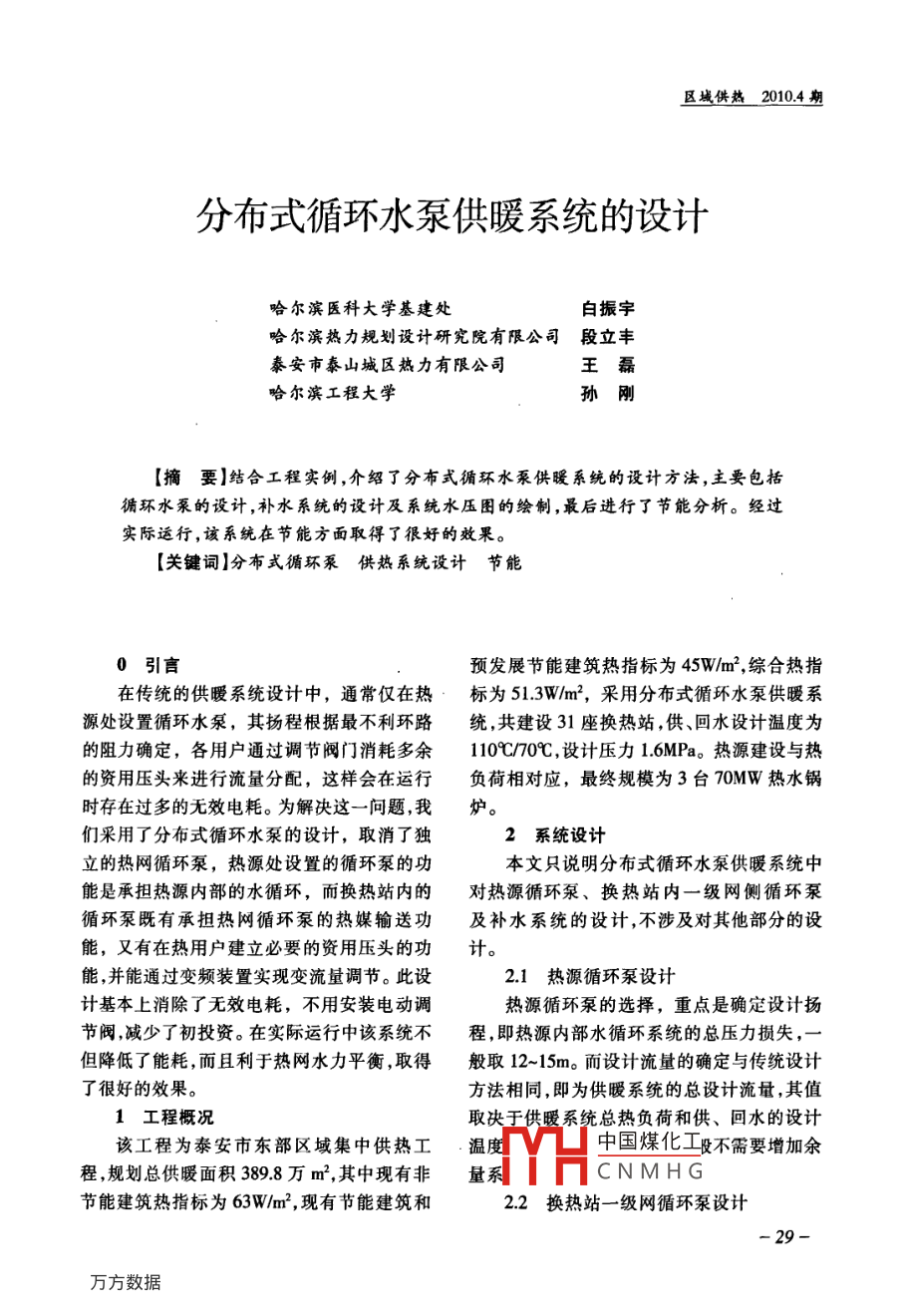 分布式循環(huán)水泵供暖系統(tǒng)的設(shè)計(jì)