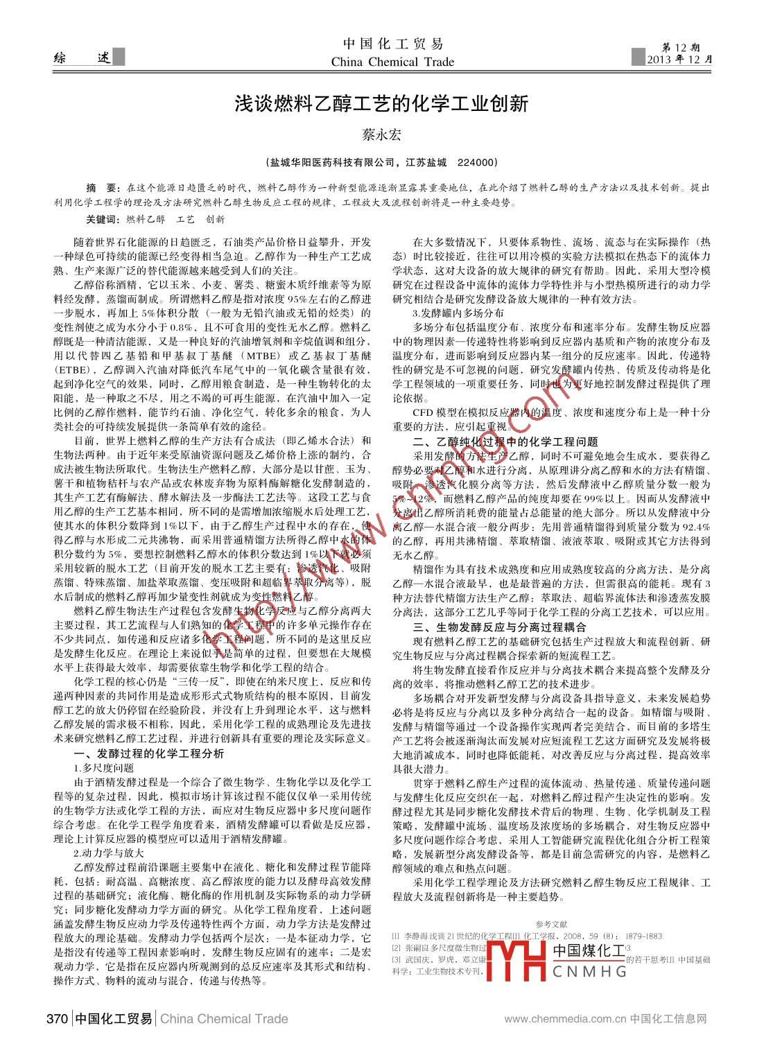 淺談燃料乙醇工藝的化學(xué)工業(yè)創(chuàng)新