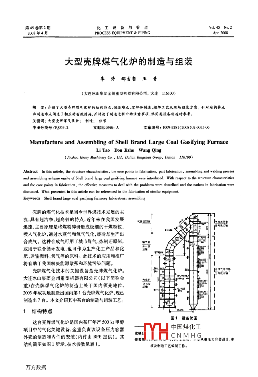 大型殼牌煤氣化爐的制造與組裝