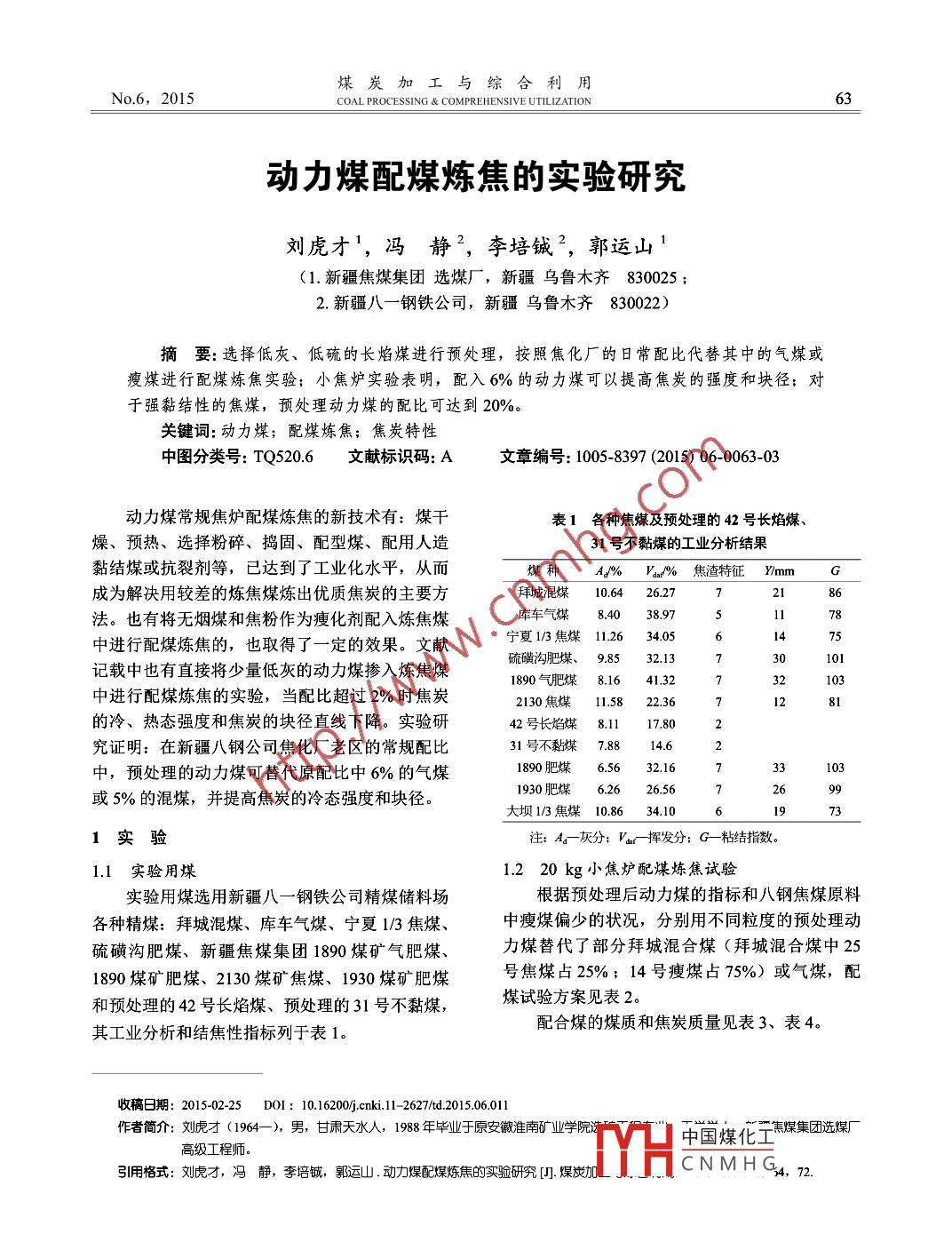 動(dòng)力煤配煤煉焦的實(shí)驗(yàn)研究