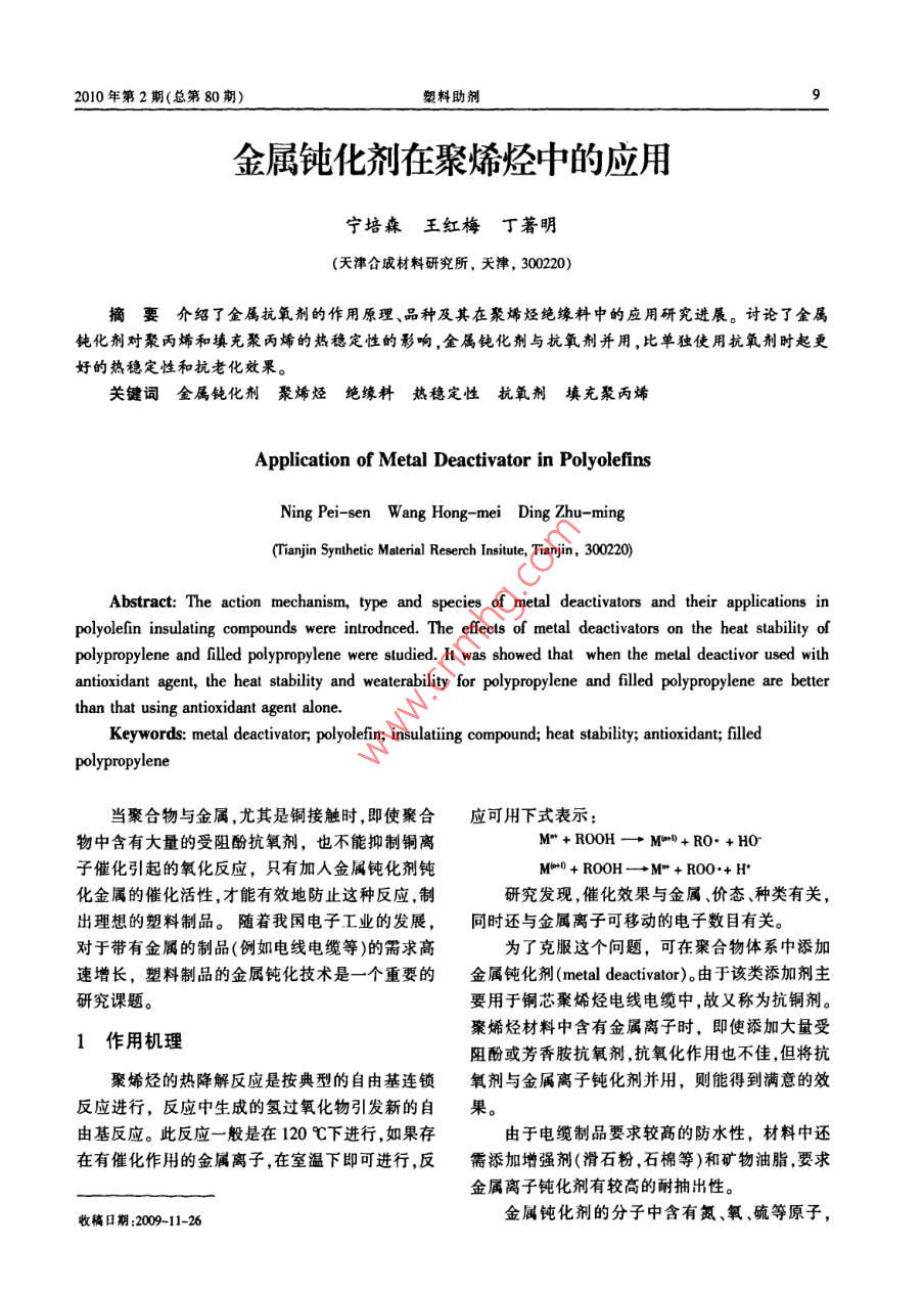 金屬鈍化劑在聚烯烴中的應(yīng)用