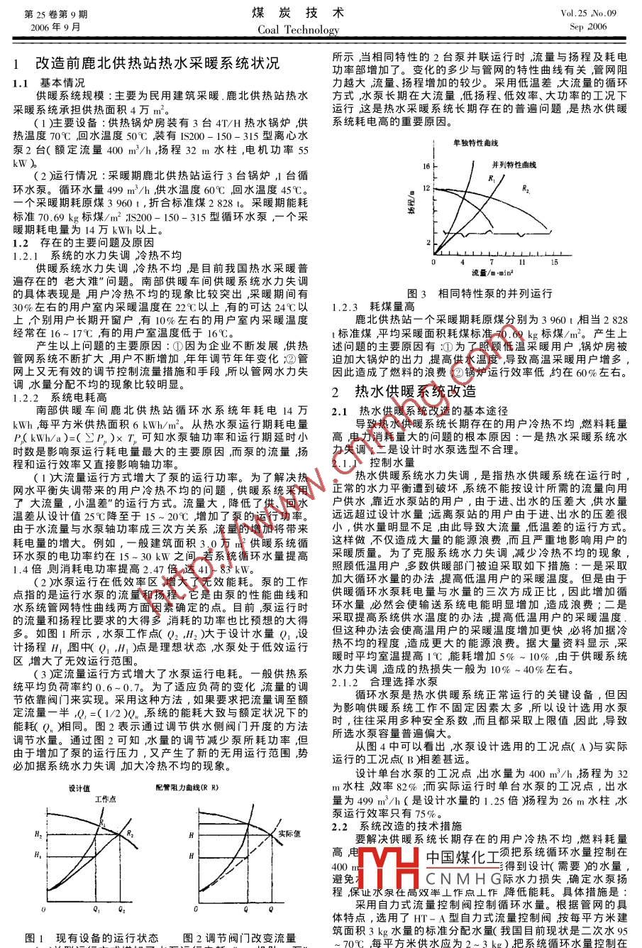第25卷第9期煤炭技術(shù)ol.25No.092006年9月Coal TechnologyP2006熱水供暖系統(tǒng)的改造與節(jié)能王建波鶴崗煤業(yè)集團(tuán)公司水電熱力公司,黑龍江鶴崗154100)摘要拱暖系統(tǒng)在長(zhǎng)期的實(shí)踐中暴露岀諳如電力消耗量大,燃料耗量高用戶冷熱不均等老大難″問(wèn)題這個(gè)問(wèn)題已經(jīng)到了必須認(rèn)真解決的時(shí)候了。文中對(duì)此問(wèn)題提出了解決方法關(guān)鍵詞熱水供暖;流量控制;水泵;節(jié)能中圖分類號(hào):TU995文獻(xiàn)標(biāo)識(shí)碼文章編號(hào)∶008-872X(2006)9-0129-02Transformation and Energysaning of Hot Wator Heating SystemWANG Jian-boWater and Electricity Heating Power Co of Hegang Mining Group Co. Hegang 154100 ChinaAbstract: This paper introduces an example of reform about heating system. By analysis the offect of new wayssome problems wicl becomeKey words hot water heating system flow control i pump i energy saning0前言屬鹿北供熱站供暖系統(tǒng)進(jìn)行了全面地技術(shù)改造,經(jīng)2004年10月至2005年4月采暖運(yùn)行實(shí)踐證明改造工作達(dá)到了預(yù)水電熱力公司南部供暖車間現(xiàn)有供暖鍋爐房2個(gè)鍋期的目標(biāo)即提高了供暖的質(zhì)量消除了冷熱不均的現(xiàn)象,又爐53臺(tái)總蒸噸是232蒸噸供熱面積達(dá)到110萬(wàn)m2釆暖期降低了煤耗量和電力消耗。為在最短的時(shí)間內(nèi)用最少的投耗電750萬(wàn)kWh,耗煤67000t。針對(duì)供暖系統(tǒng)長(zhǎng)期存在的資改變供暖系統(tǒng)長(zhǎng)期普遍存在的供暖質(zhì)量低,能耗高的落用戶冷熱不均,燃料耗量高電力消耗量大的問(wèn)題,對(duì)其所后局面提供了一種基本的途徑和方氵可燃、易燃材料日益增多由于村民缺乏應(yīng)有的安全常識(shí)致分利用農(nóng)村現(xiàn)有的宣傳資源鞏固和擴(kuò)大農(nóng)村消防宣傳教育使家庭火災(zāi)事故頻發(fā)仁二是農(nóng)村的私營(yíng)、民營(yíng)企業(yè)快速發(fā)展陣地結(jié)會(huì)科技下鄉(xiāng)"、農(nóng)村普法教育″和社會(huì)綜合治理業(yè)主消防安全意識(shí)不強(qiáng)不注重消防基礎(chǔ)設(shè)施建設(shè)忽視消等有利時(shí)機(jī)通過(guò)消防文藝、消防知識(shí)競(jìng)賽、贈(zèng)送消防手冊(cè)等防安全制度建立、忽視員工消防安全培訓(xùn),重效益輕安全現(xiàn)方式大力宣傳消防科普知識(shí)。三是各鄉(xiāng)鎮(zhèn)還可以利用廣播象普遍存在致使部分企業(yè)火災(zāi)隱患較為突岀;三是農(nóng)村用有線電視、消防知識(shí)講座及開辟消防宣傳專欄等形式進(jìn)行消火用電用氣增多且沒有嚴(yán)格管理和操作規(guī)程小孩玩火、吸防宣傳。四是要抓好農(nóng)村中小學(xué)校的消防宣傳教育工作。煙、電器等火災(zāi)遞增教育主管部門和公安消防部門應(yīng)緊密配合把消防宣傳教育2加強(qiáng)農(nóng)村消防工作的具體措施納入中小學(xué)的課堂,從小培育孩子的消防安全意識(shí)同時(shí)達(dá)到教育一個(gè)孩子,帶動(dòng)一個(gè)家庭影響整個(gè)社會(huì)的目的。通(1)科學(xué)策劃,合理規(guī)劃農(nóng)村消防發(fā)展。建設(shè)社會(huì)主義過(guò)政府牽頭部門聯(lián)動(dòng)派出所組織實(shí)施單位群眾共同參與新農(nóng)村不能再沿用老一套的思路和作法必須對(duì)農(nóng)村發(fā)展的農(nóng)村消防宣傳態(tài)勢(shì),大力營(yíng)造消防安全氛國(guó)提升農(nóng)村抵有一個(gè)全新的發(fā)展理念、發(fā)展思維、發(fā)展格局科學(xué)策劃合御火災(zāi)能力理規(guī)劃。結(jié)合村莊和人居環(huán)境治理規(guī)劃、宅基地規(guī)劃,進(jìn)(4)發(fā)展農(nóng)村多種消防組織力量。大力加強(qiáng)農(nóng)村多種形步完成和落實(shí)農(nóng)村消防發(fā)展規(guī)劃。把農(nóng)村消防與農(nóng)村經(jīng)濟(jì)式消防隊(duì)伍建設(shè)逐步形成以專職消防隊(duì)為骨干、義務(wù)消防發(fā)展有效統(tǒng)籌起來(lái)把農(nóng)村消防規(guī)劃與鄉(xiāng)鎮(zhèn)建設(shè)規(guī)劃統(tǒng)籌起隊(duì)為基礎(chǔ)的農(nóng)村消防力量布局。各鄉(xiāng)村要依據(jù)自身的特點(diǎn)重規(guī)劃好安全布局、消防通道、消防通信、消防水源、消防隊(duì)務(wù)消防隊(duì)伍、組織群眾自發(fā)形成的聯(lián)防自治隊(duì)伍及其組合,站)消防組織解決農(nóng)村長(zhǎng)期以來(lái)消防發(fā)展無(wú)序的現(xiàn)狀還可以根據(jù)村鎮(zhèn)廠礦企業(yè)單位的實(shí)際在單位內(nèi)部組建消防(2腩轉(zhuǎn)變觀念加強(qiáng)對(duì)農(nóng)村消防工作的領(lǐng)導(dǎo)。要切實(shí)以隊(duì)伍。不管何種形式的消防隊(duì)伍,必須要做到有固定的人鄧小平理論和三個(gè)代表”重要思想為指導(dǎo),全面貫徹落實(shí)科員、地點(diǎn)和固定的辦公設(shè)施并且要達(dá)到管理日?;?、訓(xùn)練經(jīng)學(xué)發(fā)展觀。按構(gòu)建和諧社會(huì)的總體要求,以消防法律法規(guī)為?;?。同時(shí)各消防隊(duì)伍應(yīng)加強(qiáng)相互間的交流聯(lián)系互相協(xié)依據(jù)大力推行預(yù)防為主防消結(jié)合的工作方針不斷加強(qiáng)對(duì)調(diào)做到聯(lián)防聯(lián)動(dòng)、優(yōu)勢(shì)互補(bǔ)、資源共享農(nóng)村消防工作的領(lǐng)導(dǎo)認(rèn)真履行消防工作職責(zé),按照建立政府統(tǒng)一領(lǐng)導(dǎo)部