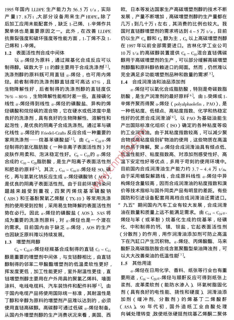 α-烯烴的生產(chǎn)和應(yīng)用進展