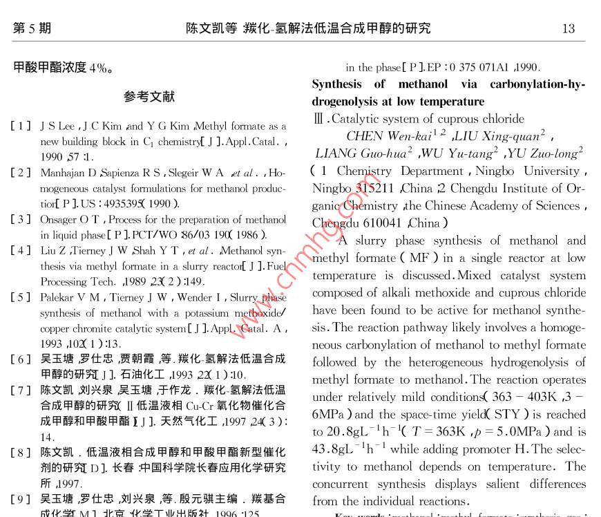 羰化-氫解法低溫合成甲醇的研究Ⅲ.氯化亞銅催化劑體系