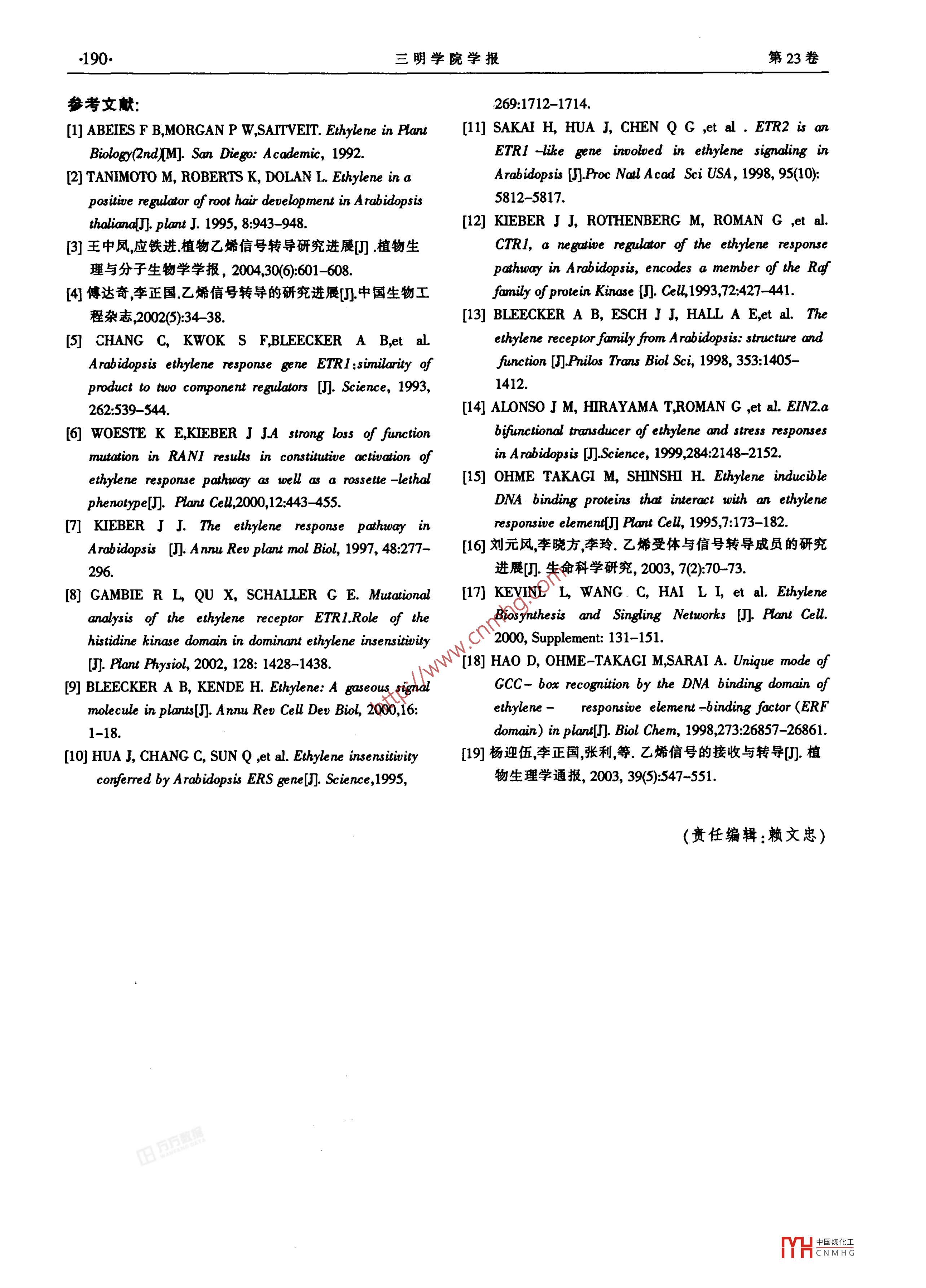 乙烯信號轉(zhuǎn)導系統(tǒng)的相關(guān)組分研究