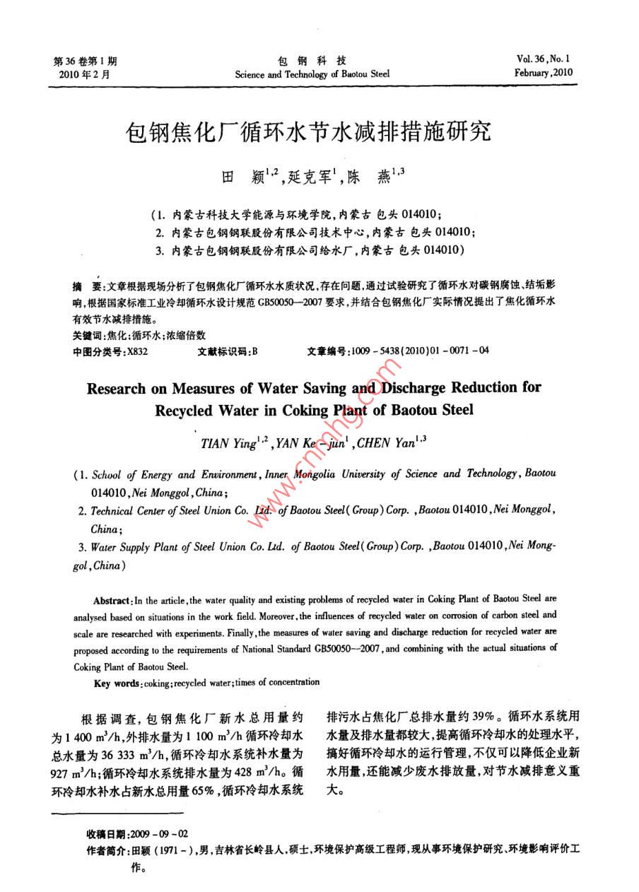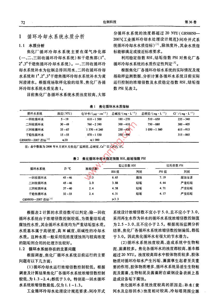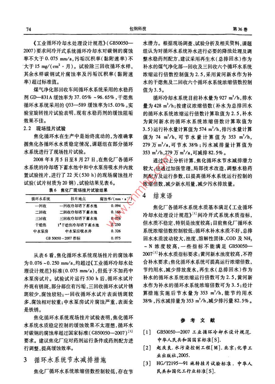 包鋼焦化廠(chǎng)循環(huán)水節(jié)水減排措施研究
