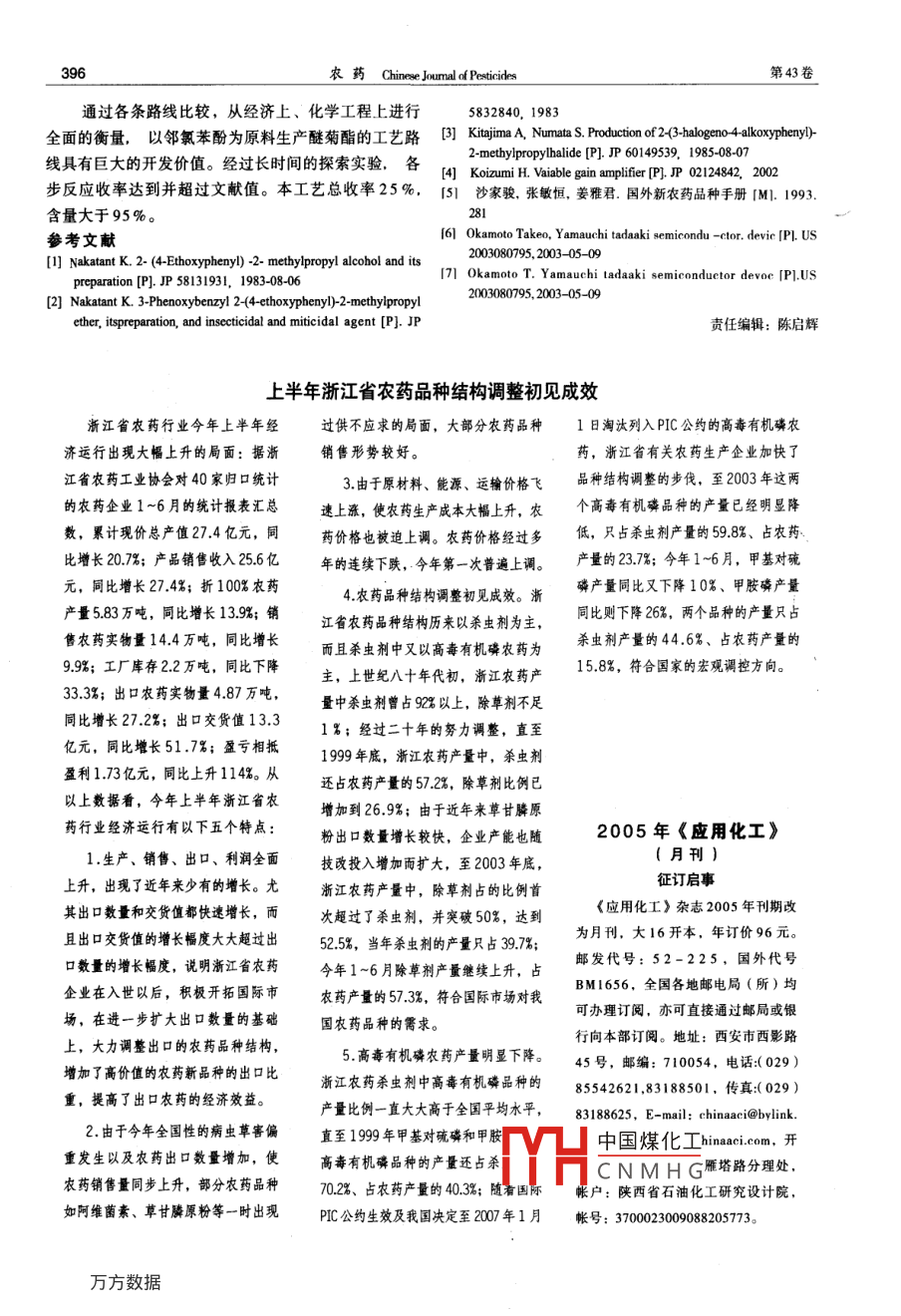 - 期刊名字:農(nóng)藥