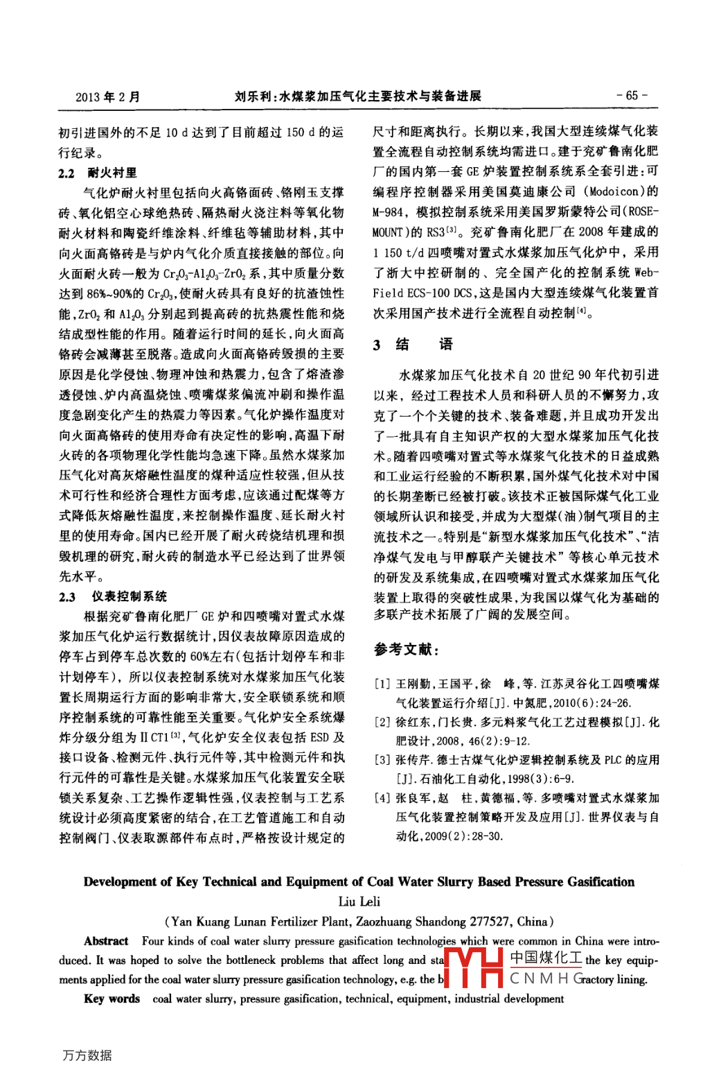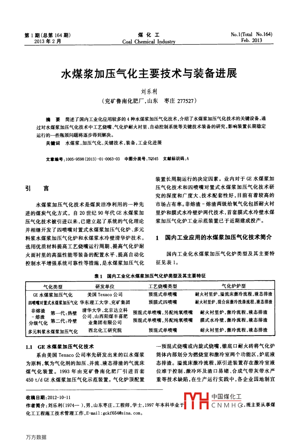 水煤漿加壓氣化主要技術與裝備進展