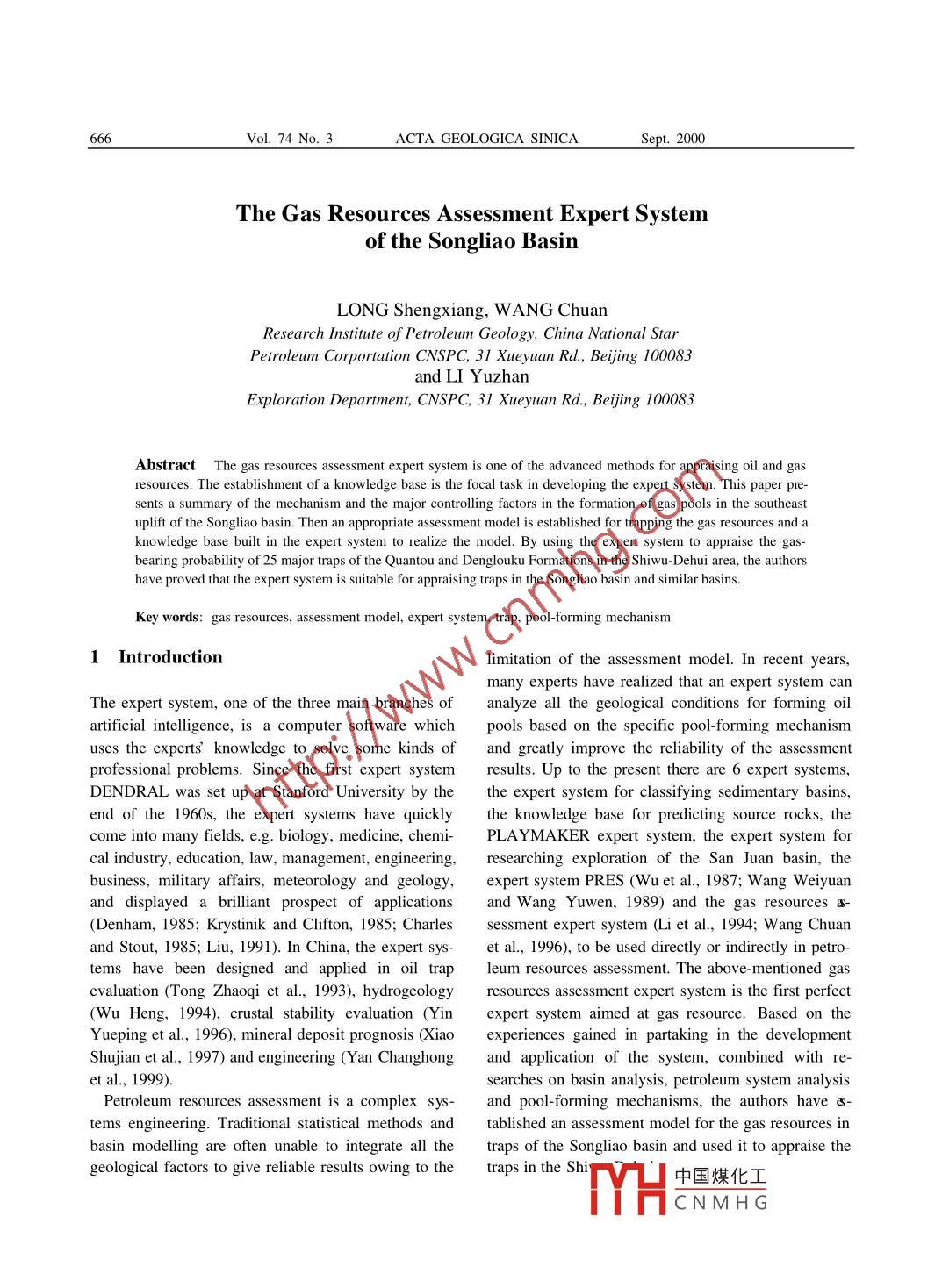 The Gas Resources Assessment Expert System of the Songliao Basin