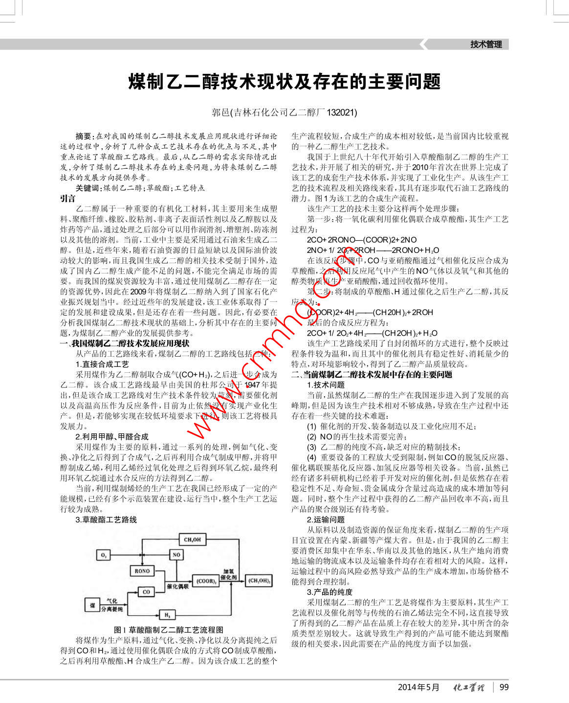 煤制乙二醇技術(shù)現(xiàn)狀及存在的主要問題