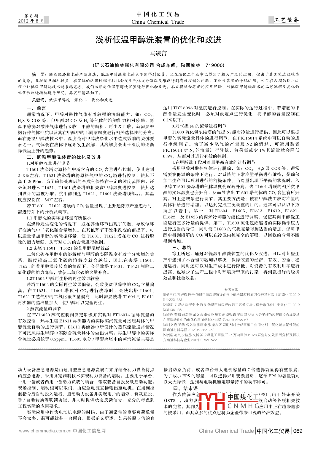 - 作者單位:延長石油榆林煤化有限公司 合成車間