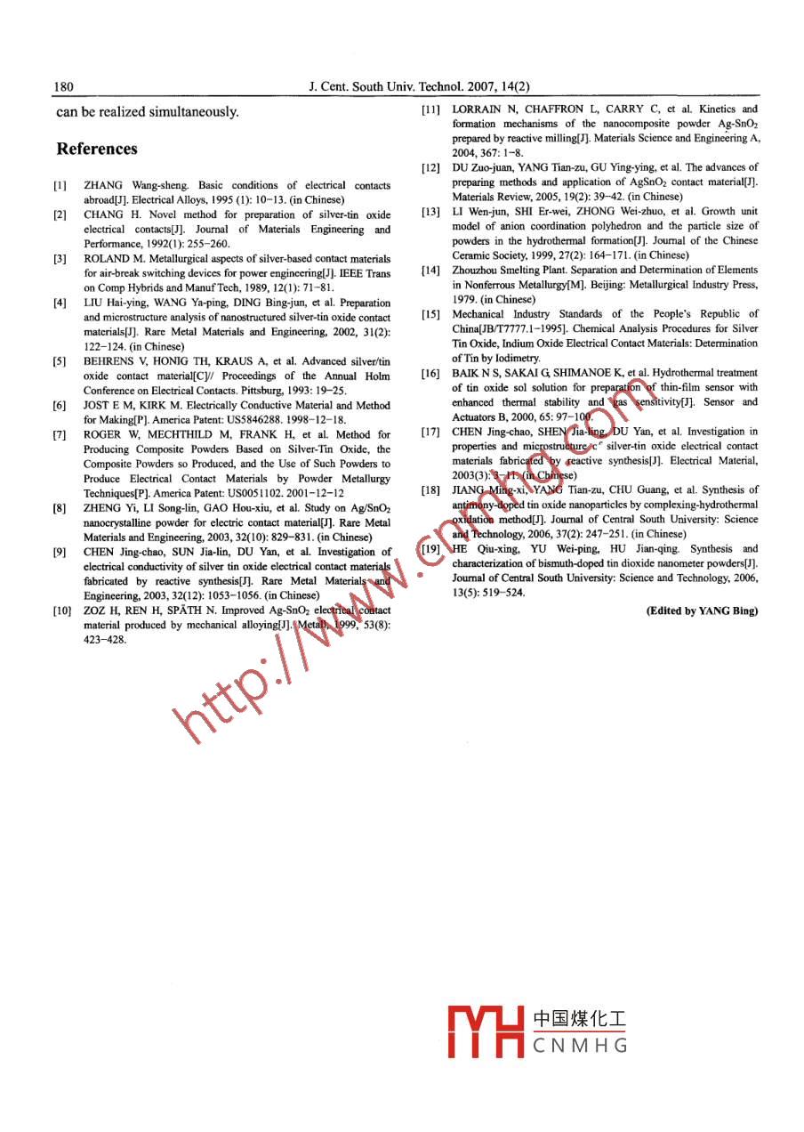 - 期刊名字:中南工業(yè)大學學報(英文版)