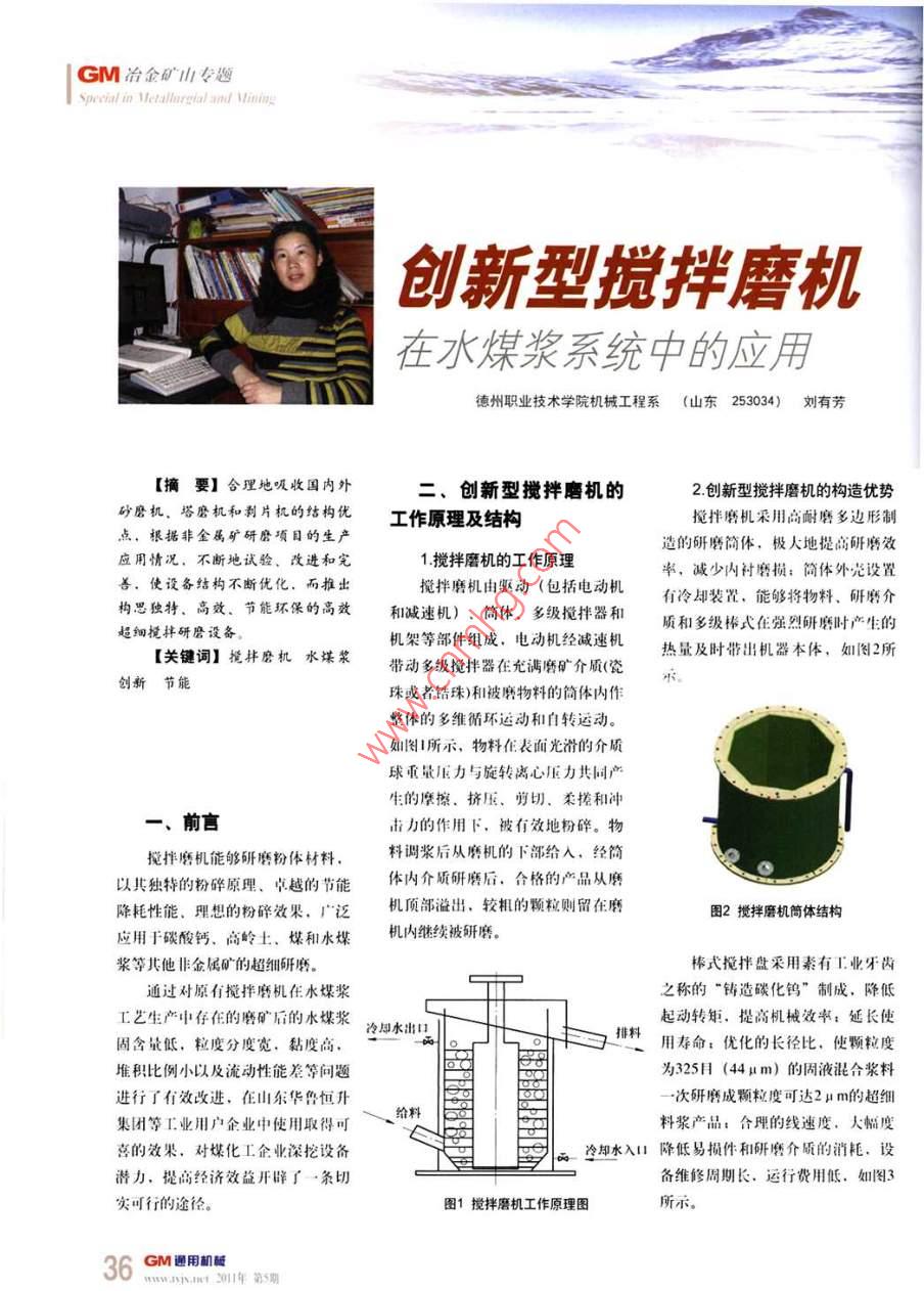 創(chuàng)新型攪拌磨機(jī)在水煤漿系統(tǒng)中的應(yīng)用