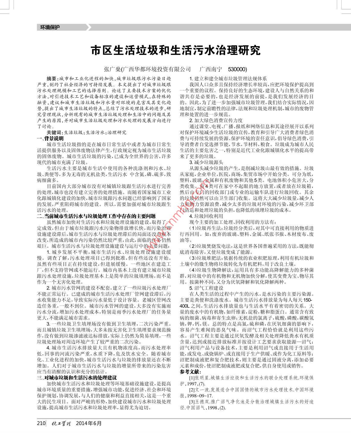 市區(qū)生活垃圾和生活污水治理研究