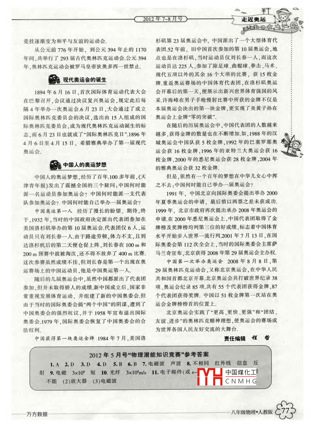 - 期刊名字:中學(xué)生數(shù)理化:八年級物理(人教版)