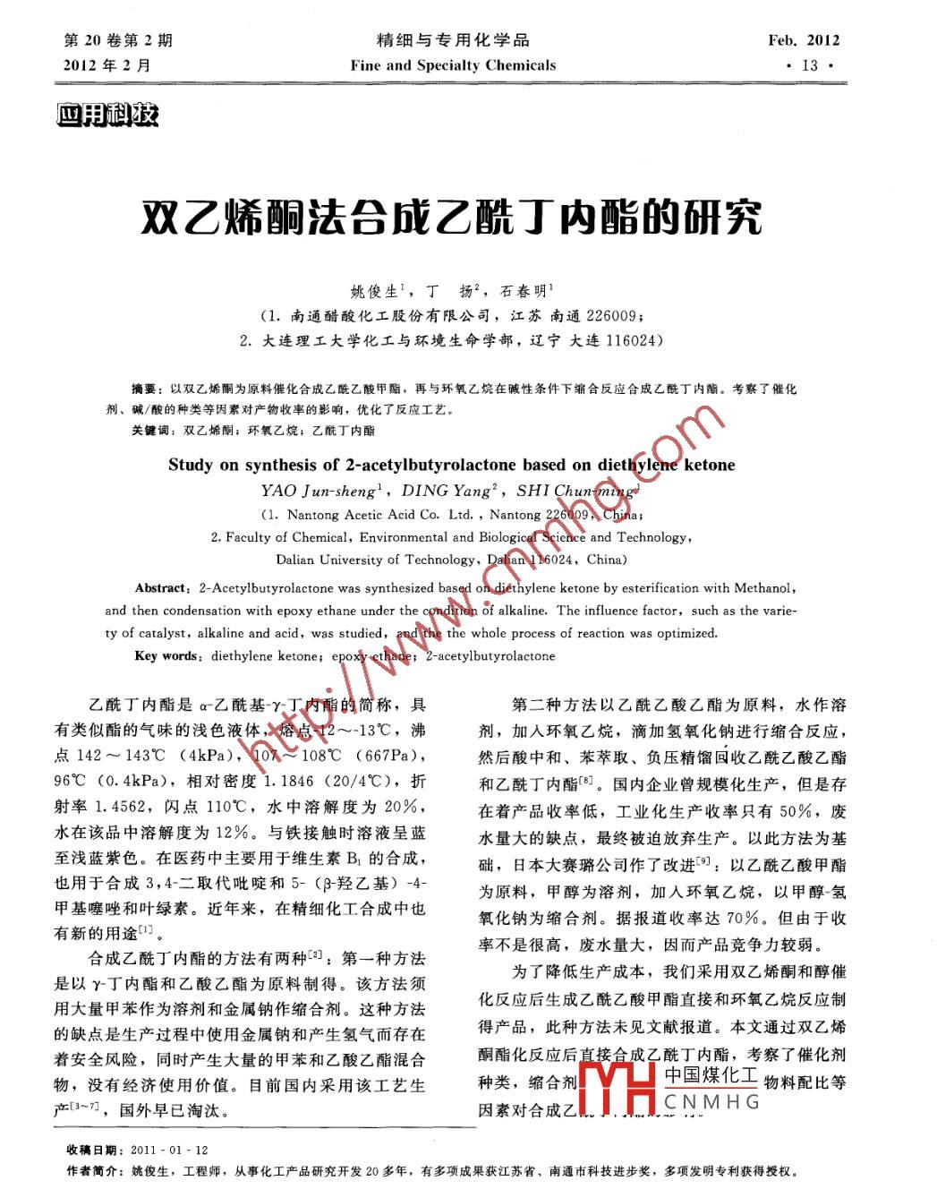 雙乙烯酮法合成乙酰丁內(nèi)酯的研究