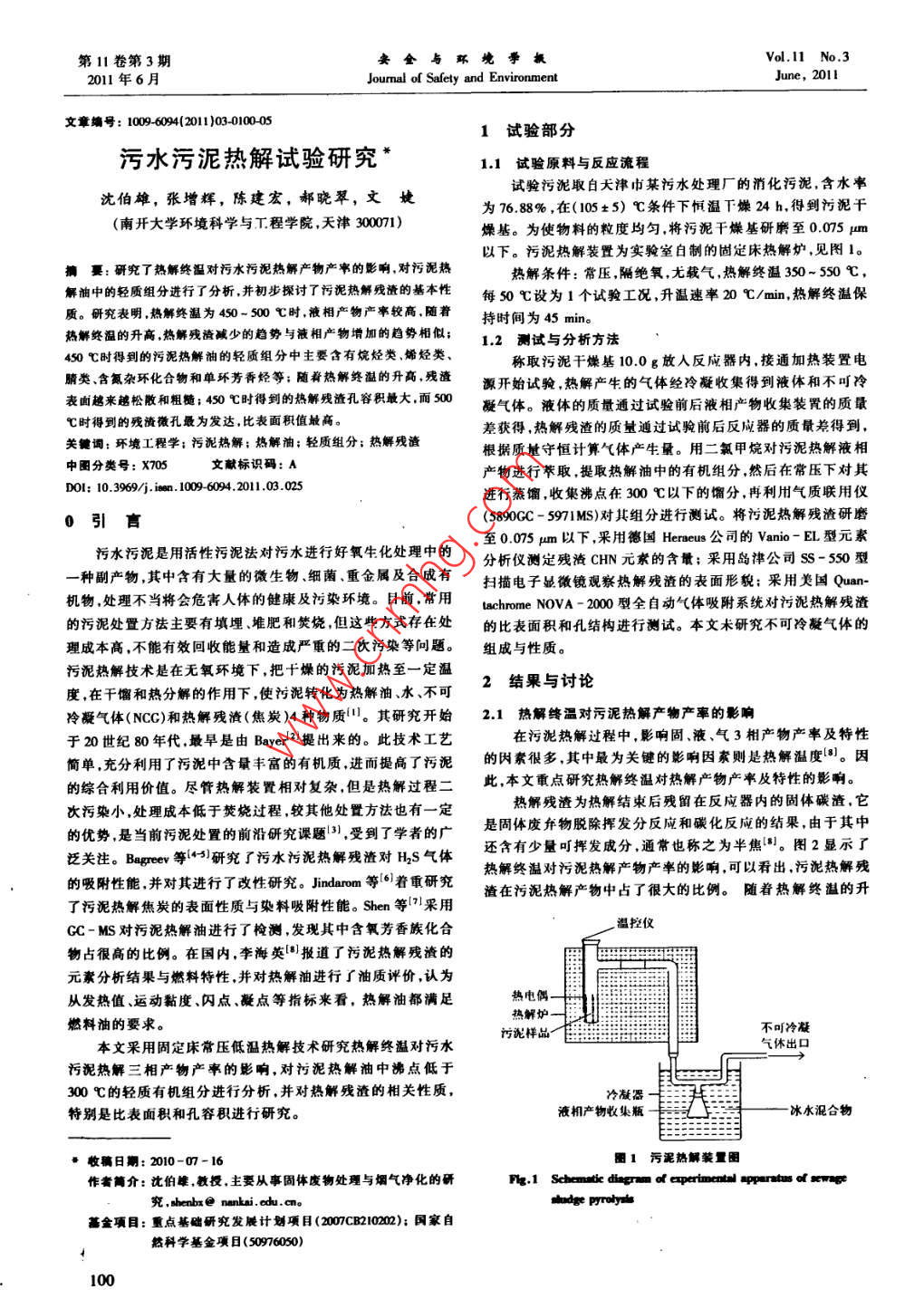 污水污泥熱解試驗研究