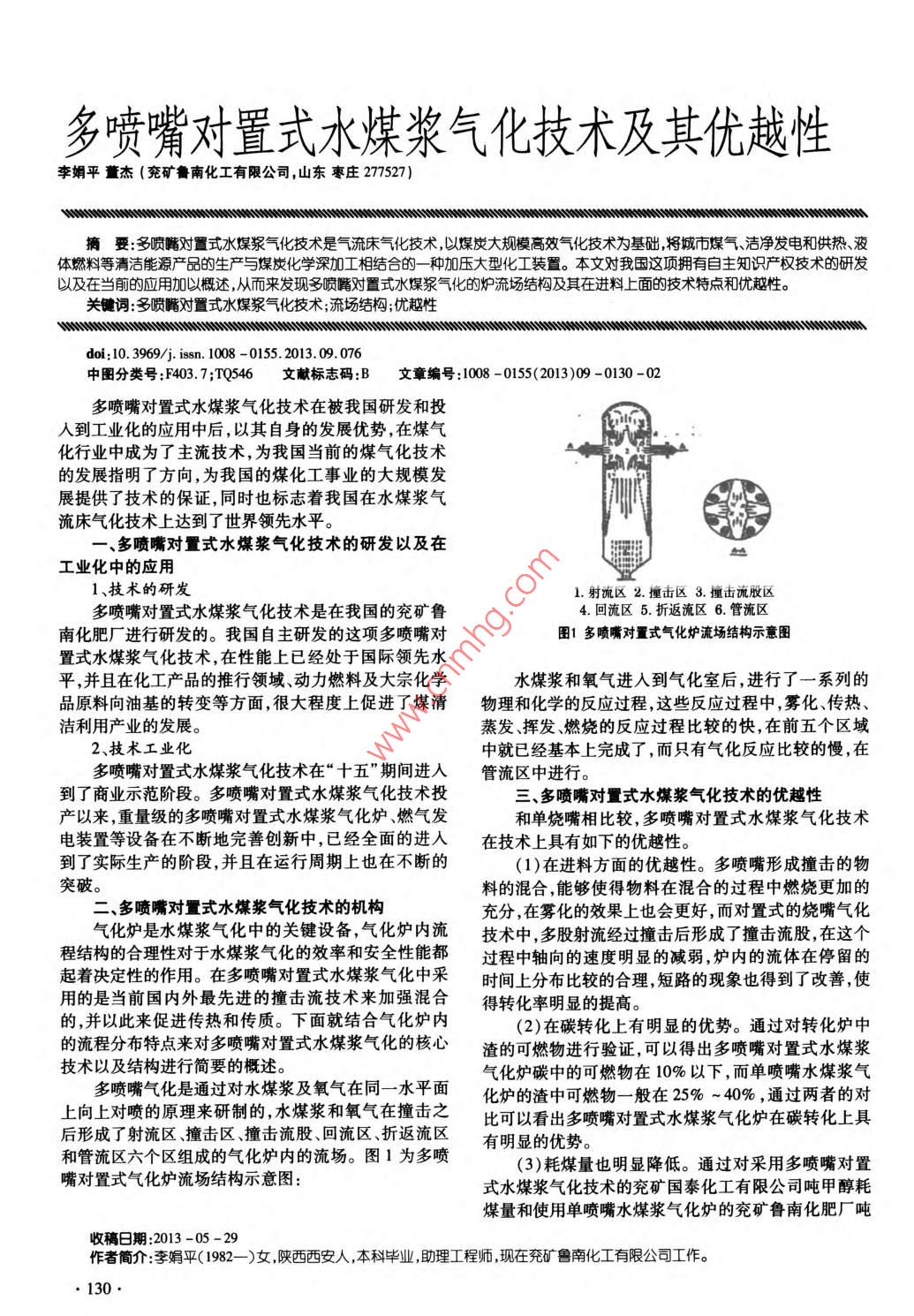 多噴嘴對置式水煤漿氣化技術及其優(yōu)越性
