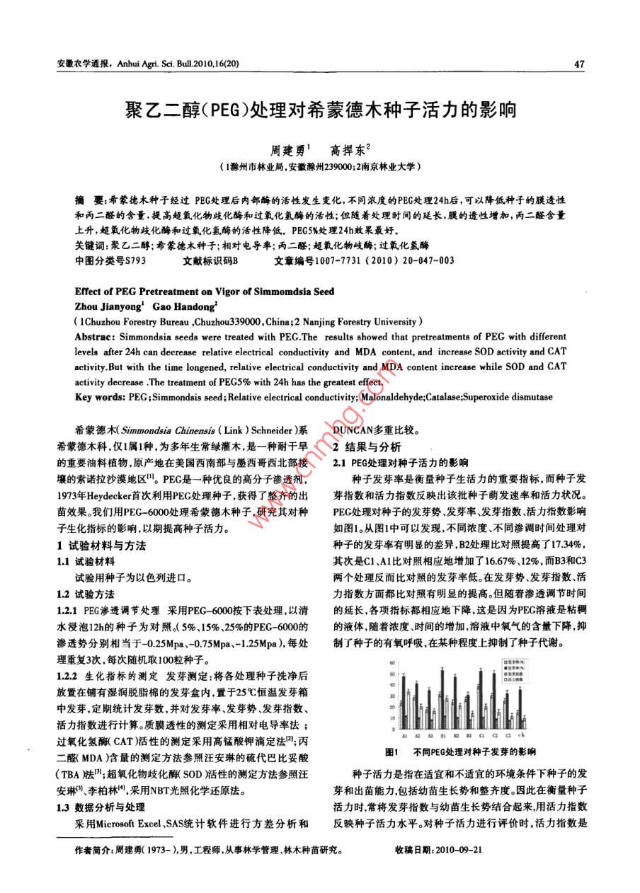 聚乙二醇(PEG)處理對希蒙德木種子活力的影響