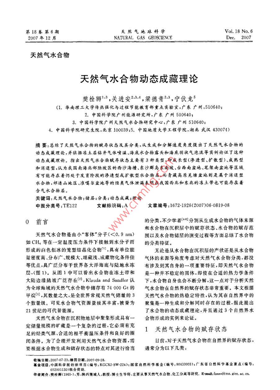- 論文作者:樊栓獅,關(guān)進安,梁德青,寧伏龍