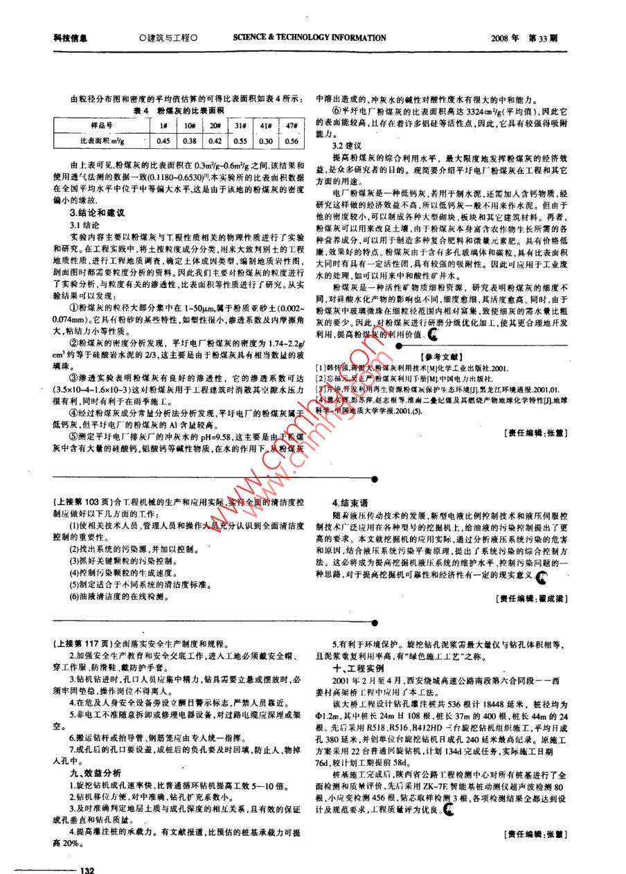 科技信息建筑與工程OCIENCE TECHNOLOGY INFORMATION008年第33期電廠粉煤灰的工程性質研究崔龍森(淮南市市政管理處安徽淮南232001)【要】本文就電廠排灰場粉煤灰蚋粒徑、密度、滲透性進行了試驗,并計算了它的比表面積,并歸此來評價其工程性質,研究表明平圩屯廠的粉煤灰有很好的應用前景?!娟P鍵詞】粉爆灰;物理性質;工程性質我粉煤灰的研究開發(fā)利用口始于20世紀50年代。主要集中d—顆粒直徑在水泥和混凝土應用開發(fā)實驗研究圍,并已在工程建筑屮廣為應用實踐證明,合理利用粉煤灰資源可以節(jié)約大能源,并可以減輕其對環(huán)2試驗數據及其處理和分析境的負面影響所以許多國家的能源部門鼓勵和支持粉煤灰資源的循2.1粒度組成分析限于篇幅,給出6個樣品顆較分布分析結果,如下圖:種潛在的第二資源,它棄之為廢,用之為寶。表1粉煤灰粒徑分布淮南平圩電廠的燃煤米源于華北地區(qū),主要來源于山西、河北安徽三省,所用燃煤的發(fā)熱量約為5000千卡噸,產灰約為2733%。產灰量約為70萬ta。本文就平圩電廠的粉煤灰的工程性質進:2行實驗研究、對比燃煤的組成燃燒的條件,運行的條件以及收塵及1001000o210:260350580%6排灰工藝等決定了粉煤灰的組成與性質,更進一步決定了它的用途1試驗方法10004|010030.8080420670951.1樣品采集20*002an2as0702203706309實驗樣品采自平圩電廠按扇形布置4條采樣線線上布點采用[y03104020101004009隔,14點以5m為間隔共取得了56個樣品。12試驗內容47000nao018034047808x009把從排灰場取得的56個灰樣在烘箱中以120℃C±5℃烘2h,作為試驗對象。分別進行了如下試驗由上表可以看出,在001mm-0lmm粒徑范圍內集中了80%以上12.1顆粒分析試驗:的質量采用了比重計法按國家標準試驗步驟進行的試驗:所有樣品的平均粒徑半對數累計曲線如下圖所示:D取經烘f并研細后的土樣30g,倒入三角燒瓶中,加入20ml的平均粒徑半對數累積曲線蒸餾水,待浸泡18小時以上的時間后,放在電熱皿上煮沸約lhy689x2待冷卻后,將燒瓶中的泥漿倒入址筒中,同時加入濃度為4%的r=0909六偏磷酸鈉10m,并加水配成100md的懸浮液③用攪拌器上下攪拌約1分鐘,使懋浮液均勻后立即取出攪拌④同時開動秒表分別在15,153060、100,1440min,將比重計放入懸浮液中并測讀比重計的讀數并用溫度計測讀懸浮液的溫度⑤對測得的比重計讀數y作溫度校正1.2.2滲透試驗采用了常水頭滲透試驗:實驗步驟由圖可以得出曲線的理合方程為:y=68796xm,相關系數R=1.制備直徑為24mm,高度為10m,20km,30m40m、50cm、0990900m的pve滲透骨。22密度的試驗結果描述如表2所示:(觀測數量為55個)2取有代表性的干粉煤灰分層裝入各個滲透管至頂部,并壓實。表2密度試驗結果描3加水,保持在表層有2mm的水膜,起到水封作用,水向下滲透觀測項目平均值標準差4記下從水和粉煤灰接觸時間到水從滲透管中滴下來的時間差,0.12640表征了粉煤灰的滲透性5重復幾次,這樣不同高度的滲透管反映了不同高度的粉媒灰滲23滲透系數分析(主要是指垂直方向上的港透性)透能力表3粉煤灰的垂直方向的滲透系數23容重本次試驗采用向10ml的量筒中倒人500ml水,倒人200克于樣號187101712-3134:5嫌的粉煤灰并不份攪拌,靜置5分鐘,讀出的液血高度v。用公式千密度(gcm)1071091090912312097081:0yp√計算得平均顆粒密度(單位:gm)滲透76706726517.7784692|796224比表面積測試平均值比表面積就是每克或每立方厘米的分散相具有的表面積假設顆粒呈球形則可得比表面積為S,md6試驗表明粉煤灰的滲透系數受到厚度擊實程度和它的粒徑的影響滲透系數隨厚度的增加、隨擊實程度的增加而降低隨著粒徑的增粉煤灰密度大而增大科技信息O建筑與工程OSCTENCE TECHNOLOGY INFORMATION2008年第33期由粒徑分布圖和密度的平均值估算的可得比表面積如表4所示:中溶出造成的沖灰水的堿性對酸性廢水有很大的中和能力。表4粉煤灰的比表面積⑥平圩電廠粉煤灰的比表面積高達3324cm38g(平均值)因此它樣品號1|1023u441的表面能較高,且存在著許多鋁硅等話性點因此,它具有較強得吸附比表面積mg0450380420550300/能力建提高粉煤灰的綜合利用水平,最大限度地發(fā)揮粉煤灰的經濟效上表可見粉煤灰的比表面積在03m-06mke之間該結果和益,是眾多研究者的目的。現簡要介紹平于電廠粉煤灰住工程和其它使用透氣法測的數據一致01806530本實驗所的比表面積數據方面的用途。偏小的緣故電廠粉煤灰是一種低鈣灰,若用于制水泥,還需加入含鈣物質經3結論和建議研究這樣做的經濟效益不高所以低鈣灰一般不用來作水泥。但由于他的密度較小,可以制成各種大型砌塊板塊和其它建筑材料。再者3.1結論粉煤灰可以用來改良土壤,由于粉煤灰本身富含農作物生長所需的各般一驗內容主要以粉煤媒灰與T程性質相關的物理性質進行了實驗種營養(yǎng)成分可以用于制造多種復合肥料和微元素肥。其有價格低程實踐中,將土按粒地質性質進行工程地質調查確定土體成因類型編制地質巖性圖,大同時有具有一定活性團,具有較強的吸附性。因此可應用于工業(yè)廢剎面圖時都需要粒度分析的資料因此我們主要對粉煤灰的粒度進行水的處理如可以用來中和酸性礦井水。了實驗分析,與粒度有關的滲透性比表面積等性質進行了研究。從實粉煤灰是一種活性礦物質細粉資源,研究表明粉煤灰的細度不驗結果可以發(fā)現同對硅酸水化產物的影響也不同,細度愈