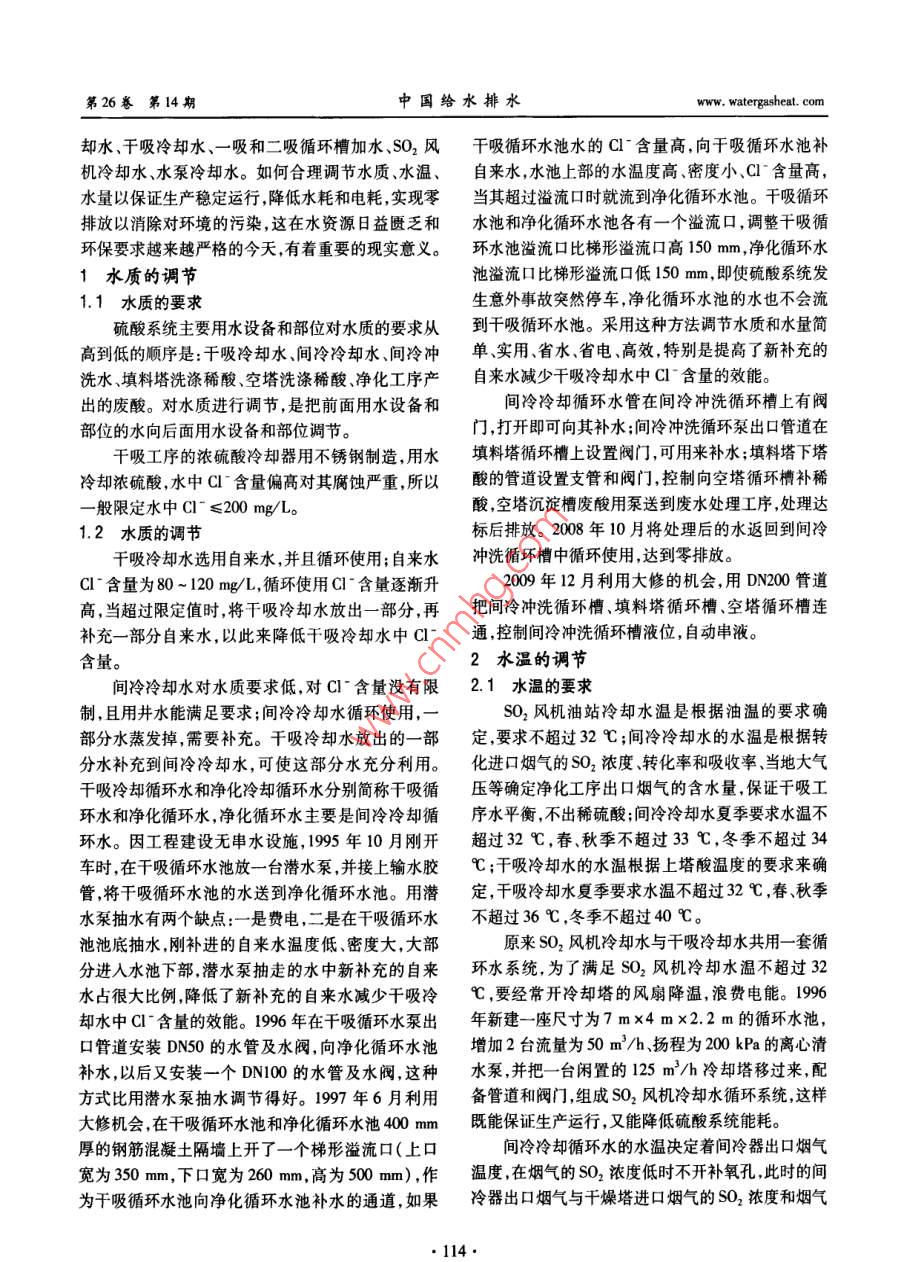 硫酸系統(tǒng)循環(huán)水的水質(zhì)、水溫、水量調(diào)節(jié)及改進(jìn) 硫酸系統(tǒng)循環(huán)水的水質(zhì)、水溫、水量調(diào)節(jié)及改進(jìn)