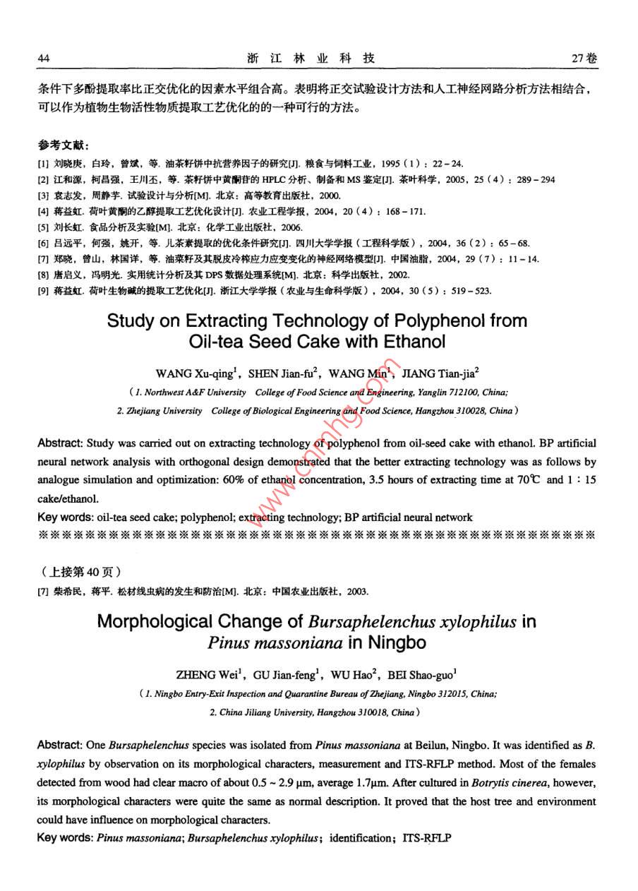 - 期刊名字:浙江林業(yè)科技