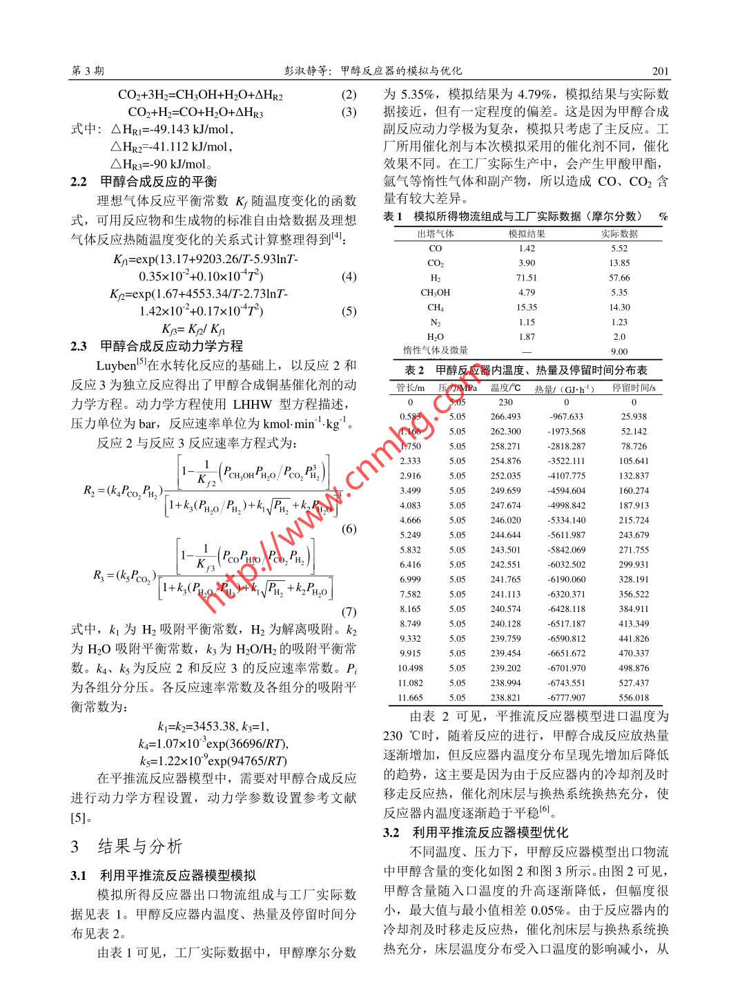 甲醇反應(yīng)器的模擬與優(yōu)化