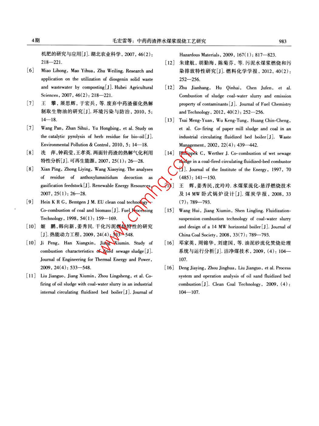 中藥藥渣拌水煤漿混燒工藝研究