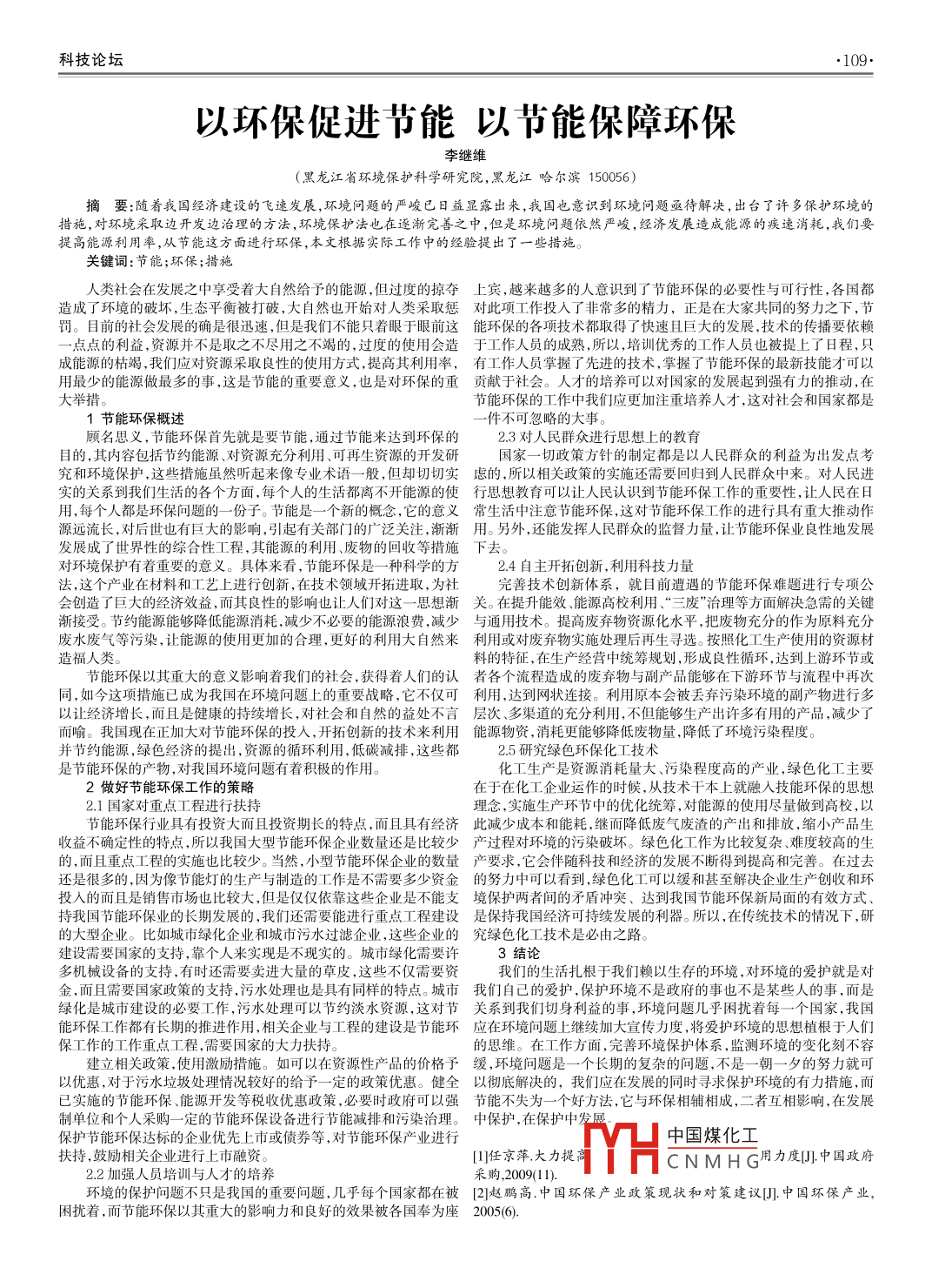 科技論壇以環(huán)保促進(jìn)節(jié)能以節(jié)能保障環(huán)保李繼維黑龍江省環(huán)境保護(hù)科學(xué)研究院,黑龍江哈爾濱150056)摘要:隨著我國經(jīng)濟(jì)建設(shè)的飛速發(fā)展,環(huán)境問題的嚴(yán)峻已日益顯露岀來,我國也意識(shí)到環(huán)境問題亟待解決,出臺(tái)了許多保護(hù)環(huán)境的措施,對(duì)環(huán)境采取邊開發(fā)邊治理的方法,環(huán)境保護(hù)法也在逐漸完善之中,但是環(huán)境問題依然嚴(yán)峻,經(jīng)濟(jì)發(fā)展造成能源的疾速消耗,我們要提高能源利用率,從節(jié)能這方面進(jìn)行環(huán)保,本文根據(jù)實(shí)際工作中的經(jīng)驗(yàn)提出了一些措施鍵詞人類社會(huì)在發(fā)展之中享受著大自然給予的能源,但過度的掠奪上賓,越來越多的人意識(shí)到了節(jié)能環(huán)保的必要性與可行性,各國都造成了環(huán)境的破壞,生態(tài)平衡被打破,大自然也開始對(duì)人類采取懲對(duì)此項(xiàng)工作投人了非常多的精力,正是在大家共同的努力之下,節(jié)罰。目前的社會(huì)發(fā)展的確是很迅速,但是我們不能只著眼于眼前這能環(huán)保的各項(xiàng)技術(shù)都取得了快速且巨大的發(fā)展,技術(shù)的傳播要依賴點(diǎn)點(diǎn)的利益,資源并不是取之不盡用之不竭的,過度的使用會(huì)造于工作人員的成熟,所以,培訓(xùn)優(yōu)秀的工作人員也被提上了日程,只成能源的枯竭,我們應(yīng)對(duì)資源采取良性的使用方式,提髙其利用率,有工作人員掌握了先進(jìn)的技術(shù),掌握了節(jié)能環(huán)保的最新技能才可以用最少的能源做最多的事,這是節(jié)能的重要意義,也是對(duì)環(huán)保的重貢獻(xiàn)于社會(huì)。人才的培養(yǎng)可以對(duì)國家的發(fā)展起到強(qiáng)有力的推動(dòng),在節(jié)能環(huán)保的工作中我們應(yīng)更加注重培養(yǎng)人才,這對(duì)社會(huì)和國家都是1節(jié)能環(huán)保概述件不可忽略的大事。顧名思義,節(jié)能環(huán)保首先就是要節(jié)能,通過節(jié)能來達(dá)到環(huán)保的2.3對(duì)人民群眾進(jìn)行思想上的教育目的,其內(nèi)容包括節(jié)約能源、對(duì)資源充分利用、可再生資源的開發(fā)研國家一切政策方針的制定都是以人民群眾的利益為出發(fā)點(diǎn)考究和環(huán)境保護(hù),這些措施雖然聽起來像專業(yè)術(shù)語一般,但卻切切實(shí)慮的,所以相關(guān)政策的實(shí)施還需要回歸到人民群眾中來。對(duì)人民進(jìn)實(shí)的關(guān)系到我們生活的各個(gè)方面,每個(gè)人的生活都離不開能源的使行思想教育可以讓人民認(rèn)識(shí)到節(jié)能環(huán)保工作的重要性,讓人民在日用,每個(gè)人都是環(huán)保問題的一份子。節(jié)能是一個(gè)新的概念,它的意義常生活中注意節(jié)能環(huán)保,這對(duì)節(jié)能環(huán)保工作的進(jìn)行具有重大推動(dòng)作源遠(yuǎn)流長,對(duì)后世也有巨大的影響,引起有關(guān)部門的廣泛關(guān)注,漸漸用。另外,還能發(fā)揮人民群眾的監(jiān)督力量,讓節(jié)能環(huán)保業(yè)良性地發(fā)展發(fā)展成了世界性的綜合性工程,其能源的利用、廢物的回收等措施下去。對(duì)環(huán)境保護(hù)有著重要的意義。具體來看,節(jié)能環(huán)保是一種科學(xué)的方24自主開拓創(chuàng)新,利用科技力量法,這個(gè)產(chǎn)業(yè)在材料和工藝上進(jìn)行創(chuàng)新,在技術(shù)領(lǐng)域開拓進(jìn)取,為社完善技術(shù)創(chuàng)新體系,就目前遭遇的節(jié)能環(huán)保難題進(jìn)行專項(xiàng)公會(huì)創(chuàng)造了巨大的經(jīng)濟(jì)效益,而其良性的影響也讓人們對(duì)這一思想漸關(guān)。在提升能效、能源高校利用、“三廢”治理等方面解決急需的關(guān)鍵漸接受。節(jié)約能源能夠降低能源消耗,減少不必要的能源浪費(fèi),減少與通用技術(shù)。提高廢棄物資源化水平,把廢物充分的作為原料充分廢水廢氣等污染,讓能源的使用更加的合理,更好的利用大自然來利用或?qū)U棄物實(shí)施處理后再生尋選。按照化工生產(chǎn)使用的資源材造福人類料的特征,在生產(chǎn)經(jīng)營中統(tǒng)籌規(guī)劃,形成良性循環(huán),達(dá)到上游環(huán)節(jié)或能環(huán)保以其重大的意義影響著我們的社會(huì),獲得著人們的認(rèn)者各個(gè)流程造成的廢棄物與副產(chǎn)品能夠在下游環(huán)節(jié)與流程中再次同,如今這項(xiàng)揹施已成為我國在環(huán)境問題上的重要戰(zhàn)略,它不僅可利用,達(dá)到網(wǎng)狀連接。利用原本會(huì)被丟棄污染環(huán)境的副產(chǎn)物進(jìn)行多以讓經(jīng)濟(jì)增長,而且是健康的持續(xù)增長,對(duì)社會(huì)和自然的益處不言層次、多渠道的充分利用,不但能夠生產(chǎn)出許多有用的產(chǎn)品,減少了而喻。我國現(xiàn)在正加大對(duì)節(jié)能環(huán)保的投入,開拓創(chuàng)新的技術(shù)來利用能源物資,消耗更能夠降低廢物量,降低了環(huán)境污染程度。并節(jié)約能源,綠色經(jīng)濟(jì)的提岀,資源的循環(huán)利用,低碳減排,這些都2.5研究綠色環(huán)?;ぜ夹g(shù)是節(jié)能環(huán)保的產(chǎn)物,對(duì)我國環(huán)境問題有著積極的作用化工生產(chǎn)是資源消耗量大、污染程度高的產(chǎn)業(yè),綠色化工主要2做好節(jié)能環(huán)