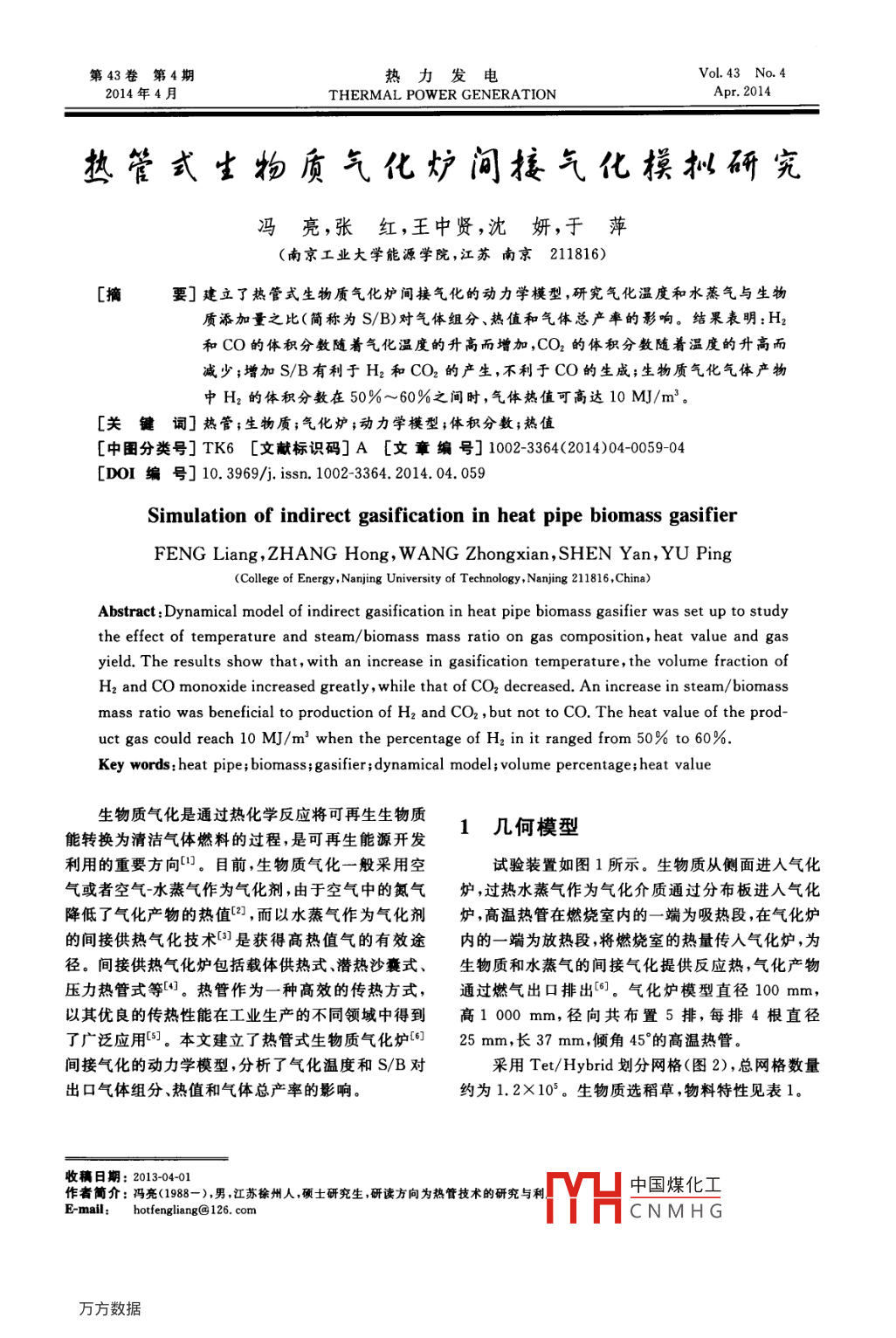 熱管式生物質(zhì)氣化爐間接氣化模擬研究