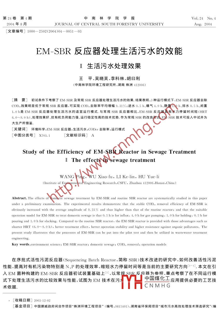 - 作者單位:中南林學院環(huán)境工程研究所