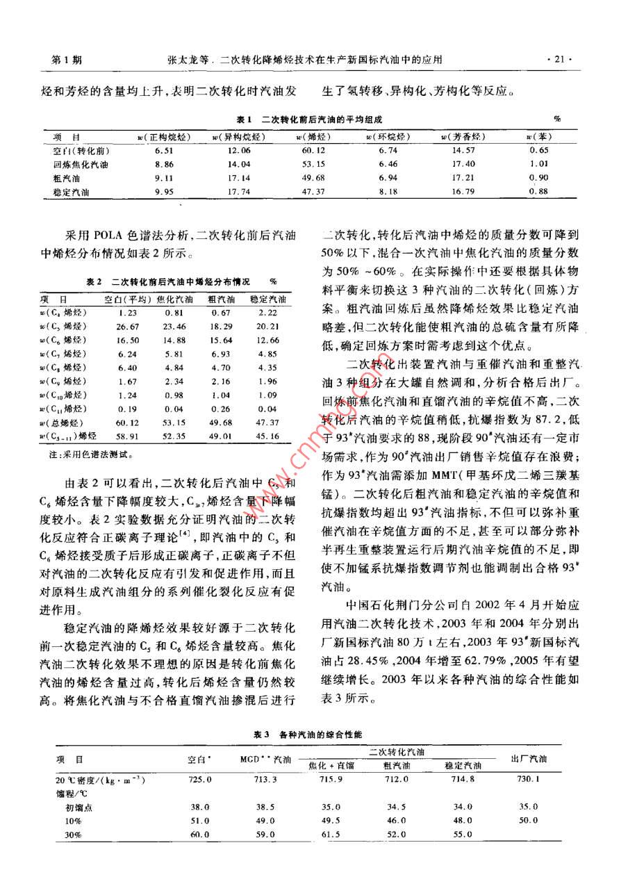 二次轉(zhuǎn)化降烯烴技術(shù)在生產(chǎn)新國標汽油中的應用