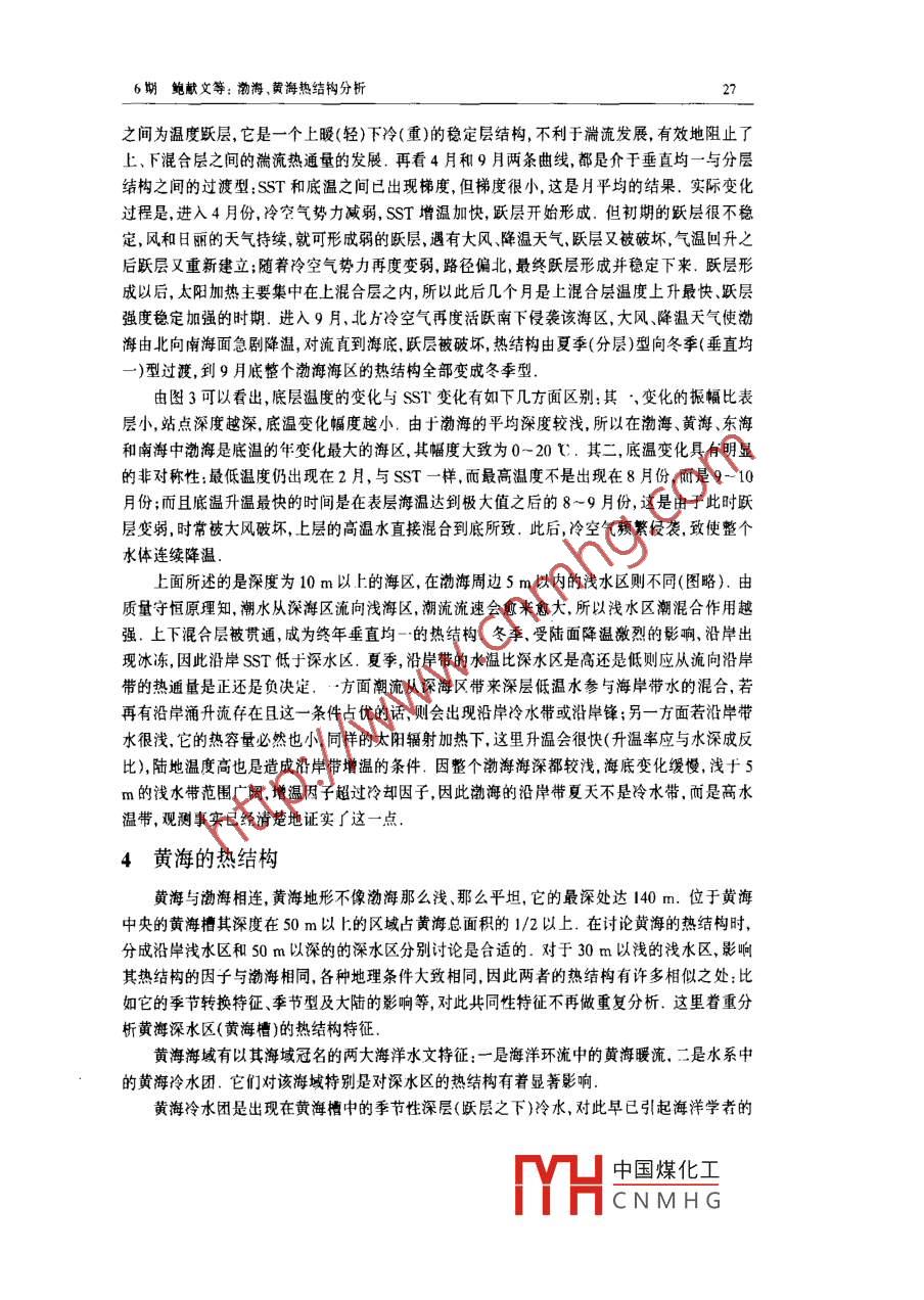 渤海、黃海熱結構分析 渤海、黃海熱結構分析