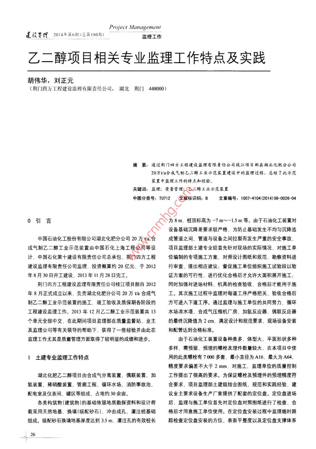 乙二醇項(xiàng)目相關(guān)專業(yè)監(jiān)理工作特點(diǎn)及實(shí)踐