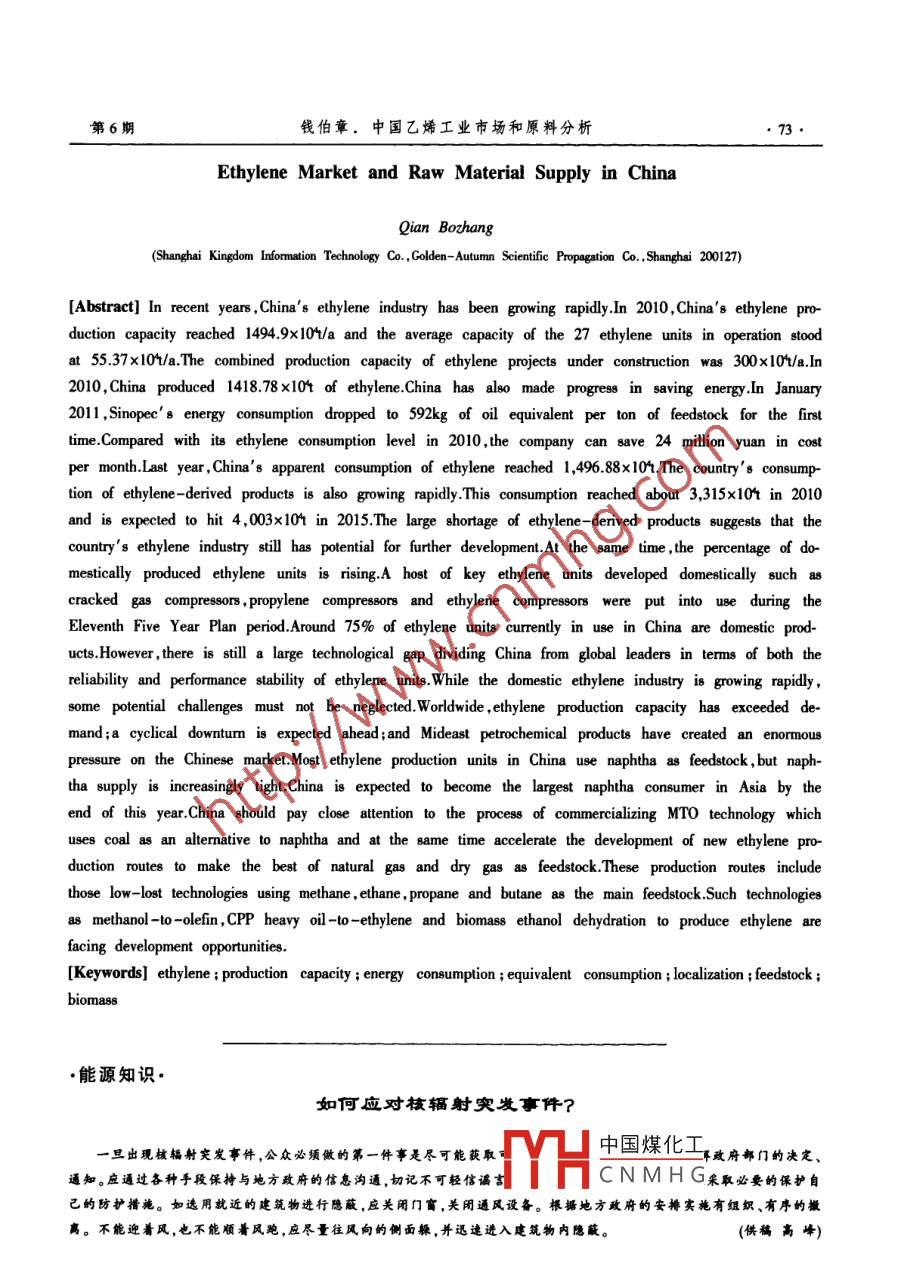 中國乙烯工業(yè)市場(chǎng)和原料分析