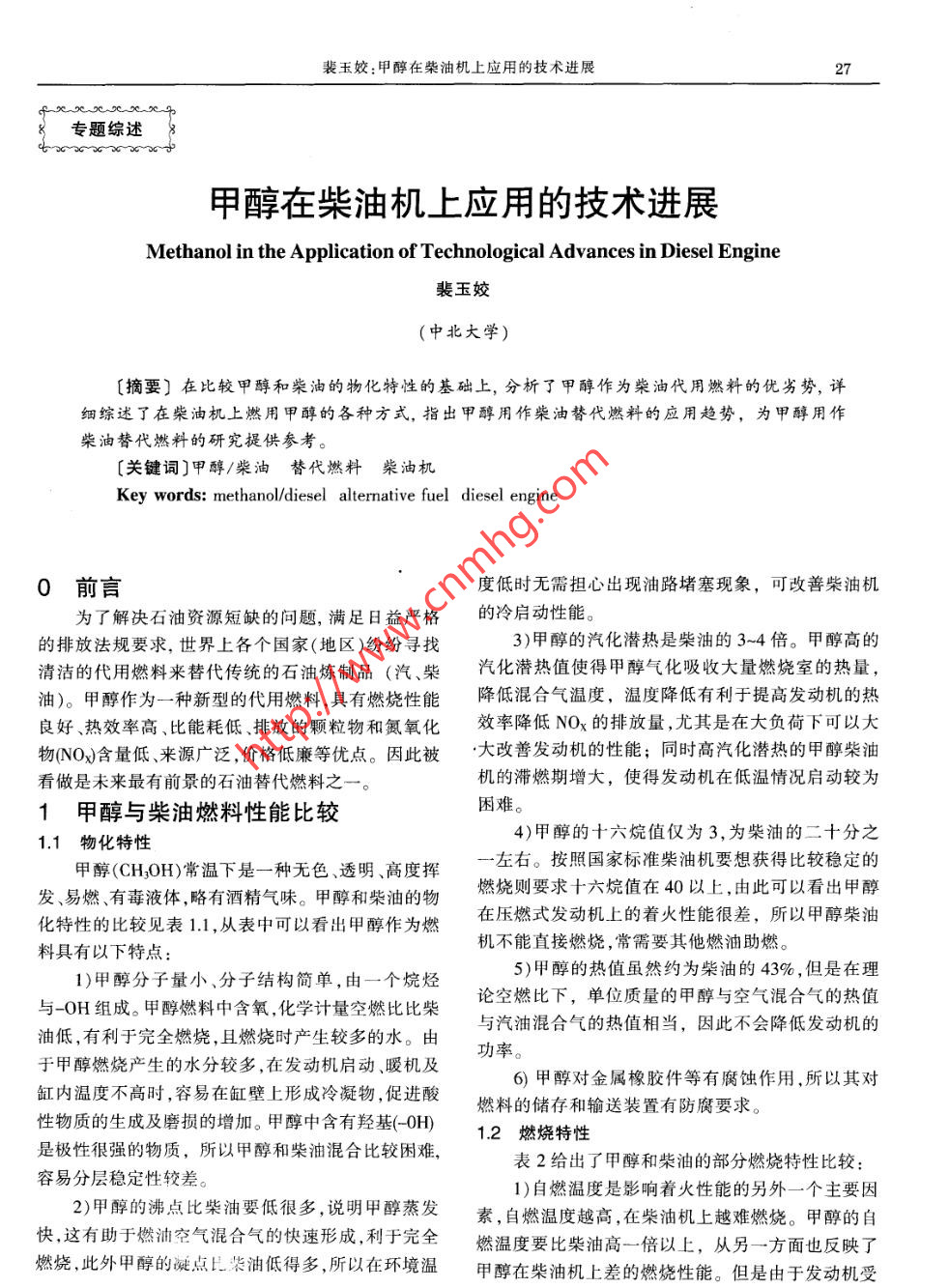 甲醇在柴油機(jī)上應(yīng)用的技術(shù)進(jìn)展